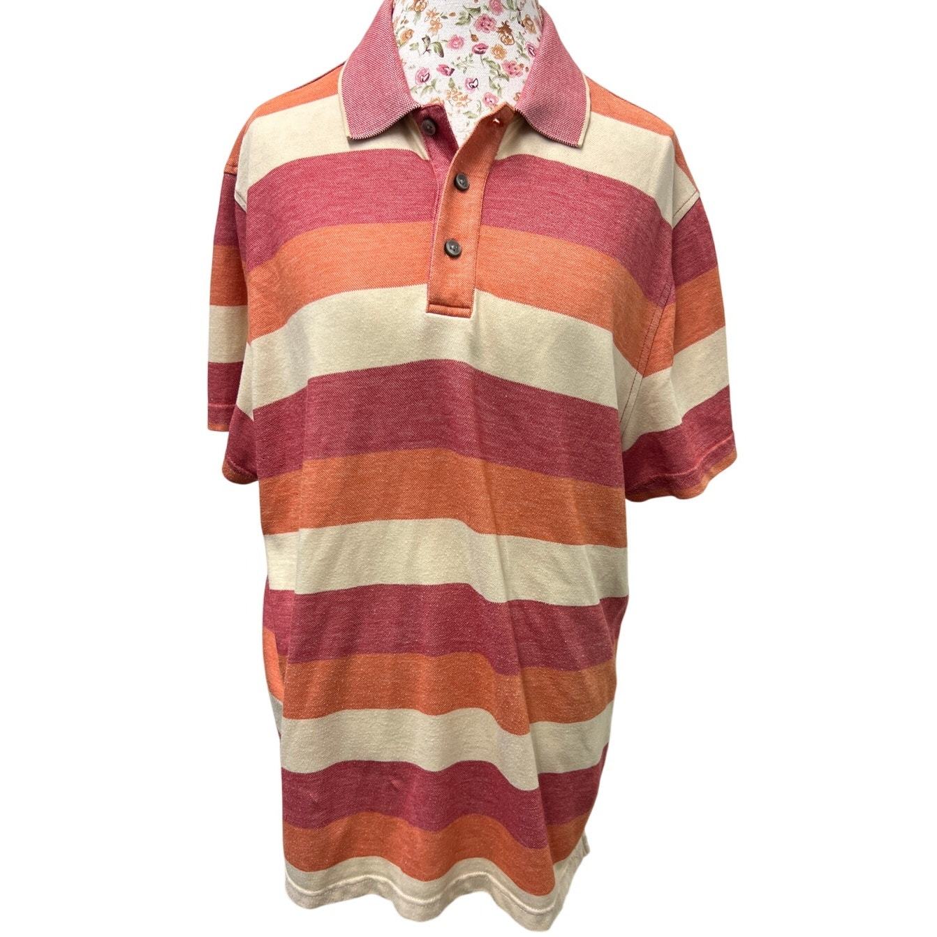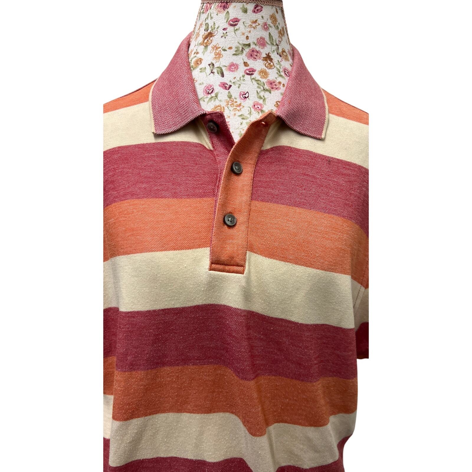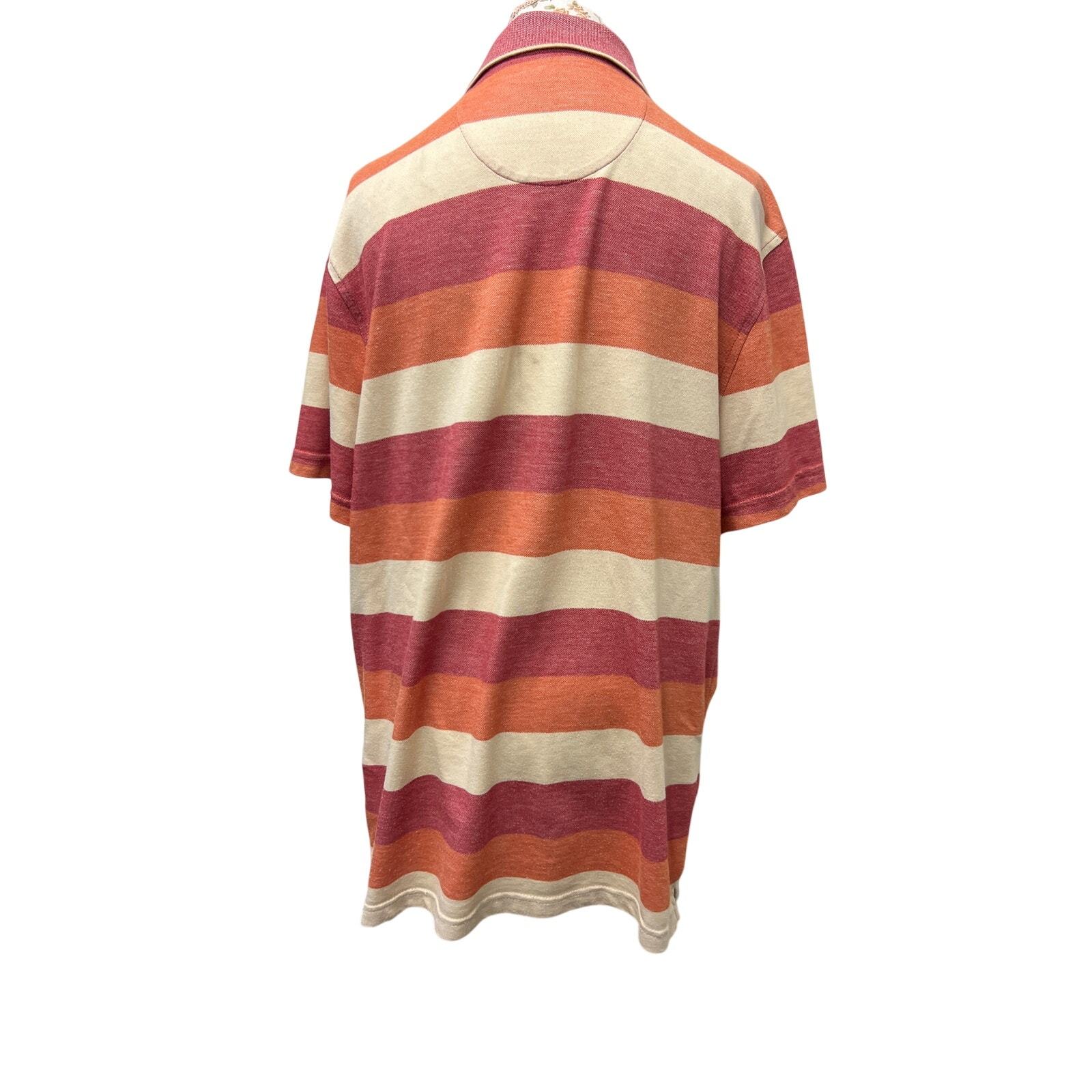? Tasso Elba XL Striped Polo ? Orange Red Supima Cotton Classic Shirt