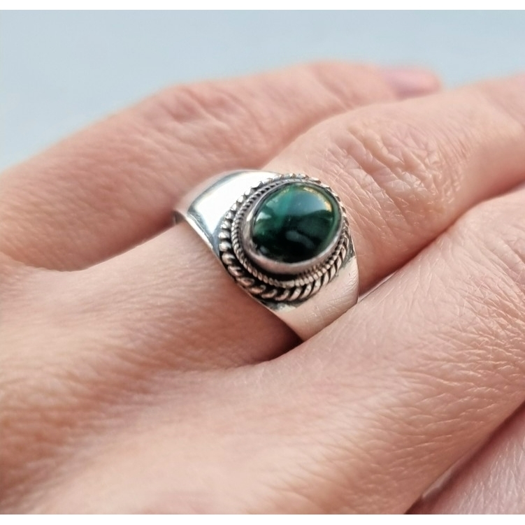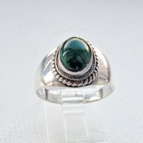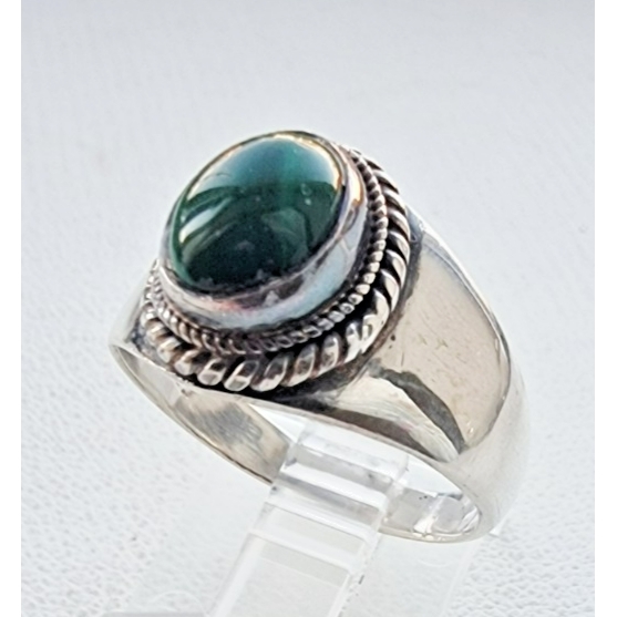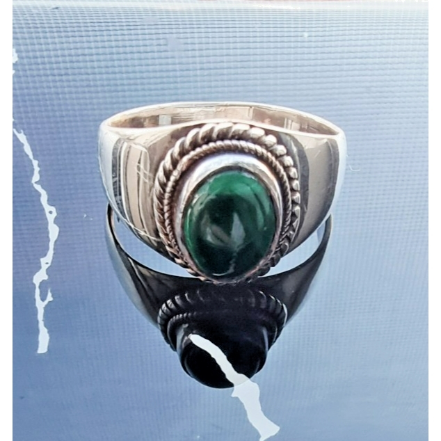 SOUTHWESTERN STYLE 925 STERLING SILVER OVAL 9X7 mm. MALACHITE RING SIZE 9 AT