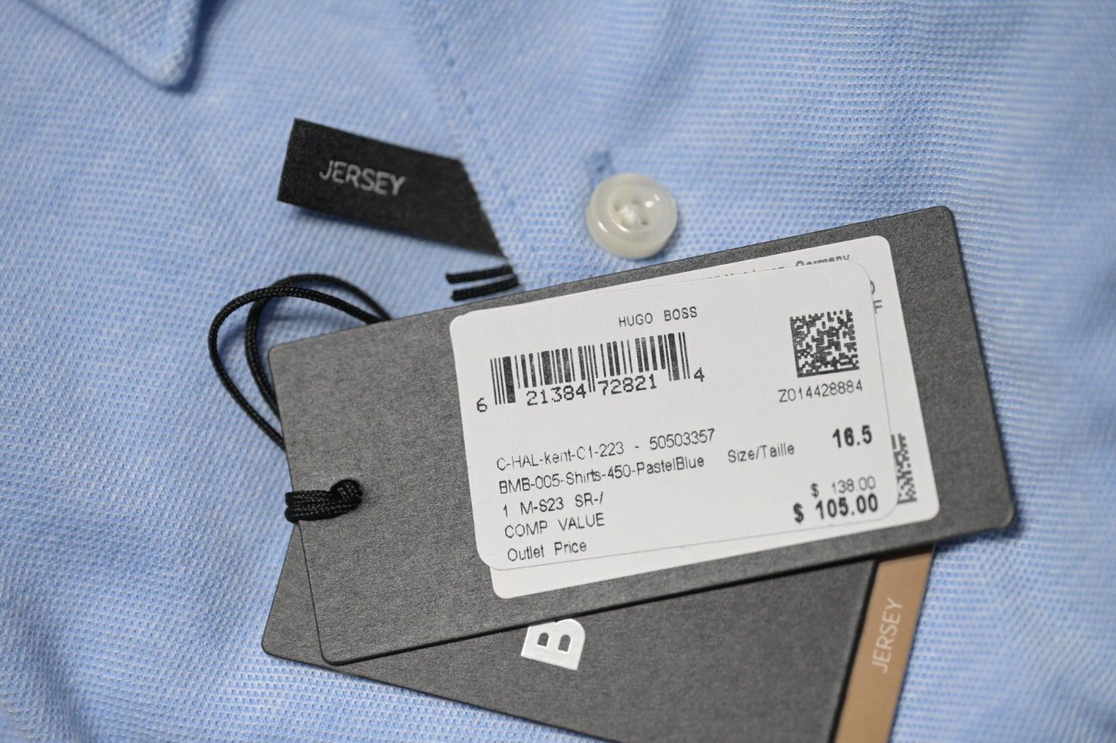 NWT Hugo Boss Hal Kent Casual Fit pastel azul Jersey Camisa de vestir de algodon