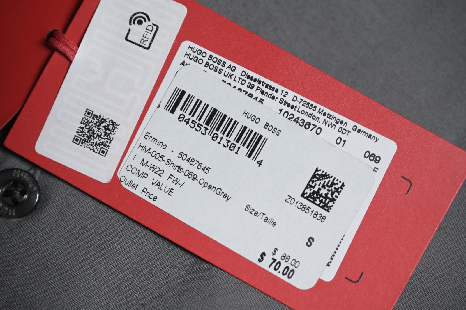 NWT Hugo Boss Hermino Ermino Kurzarm Casual Slim Fit Grey Stretch Baumwollhemd