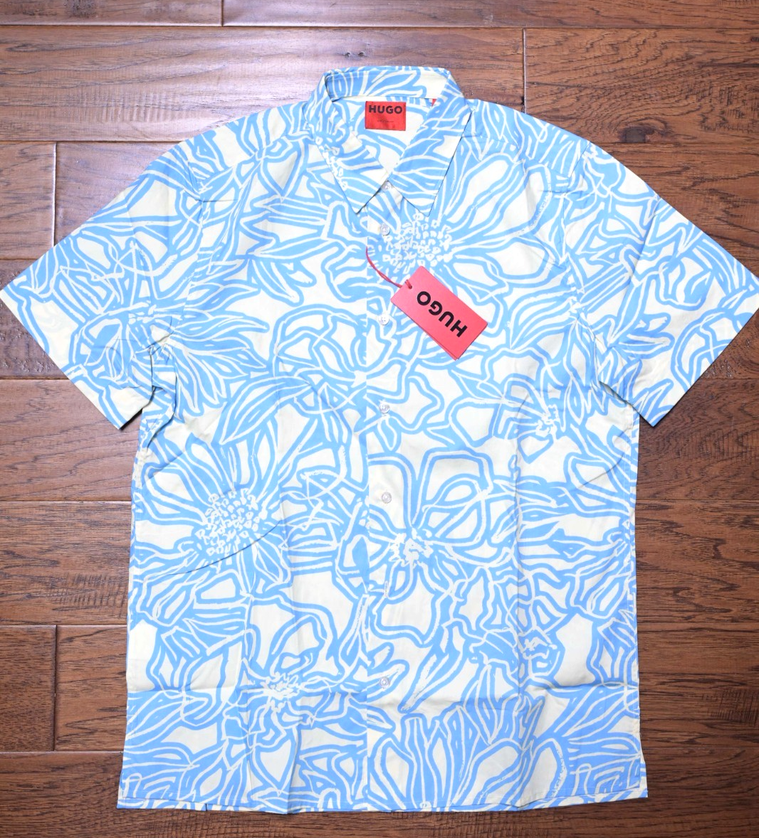HUGO BOSS Hommes Ebor Manche Courte Droit Ajuste Imprime Floral Coton Casual XL