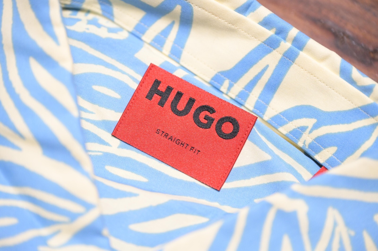 CNT Hugo Boss Mens Ebor Short Short Straight Fit Floral Print Cotton Casual Shirt