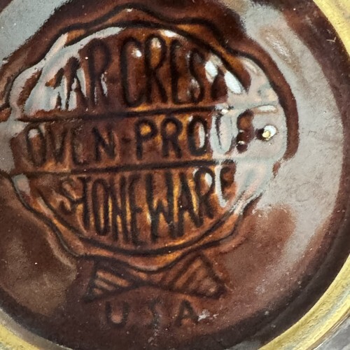 MARCREST Oven Proof Daisy Handled Casserole Dish w/ Stand Stoneware USA Bean Pot