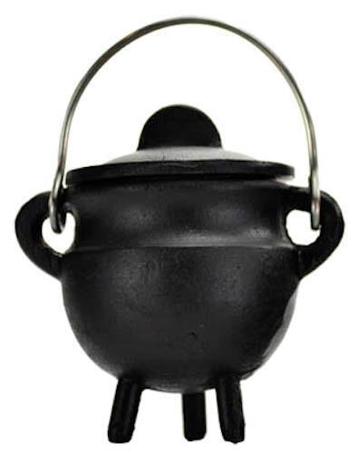 Crafted of cast iron and standing a discreet 2.75 x 3 inches, this squat cauldron rests on three legs and has small handles set on either side of its rim, through which is looped the metal carrying handle. Coming complete with a cast iron lid, it makes a wonderful addition to those who do not have the space on their altar for larger cauldrons or for those who simply wish to decorate their home or desk with this cauldrons small but powerful presence.