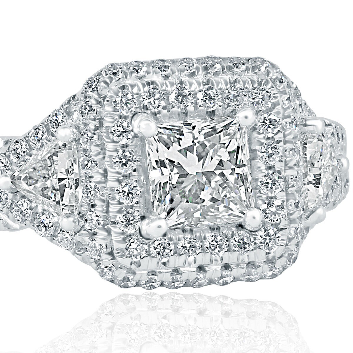 GIA Certified 1.39 TCW Princess Cut Diamond Halo Engagement Ring 18k White Gold