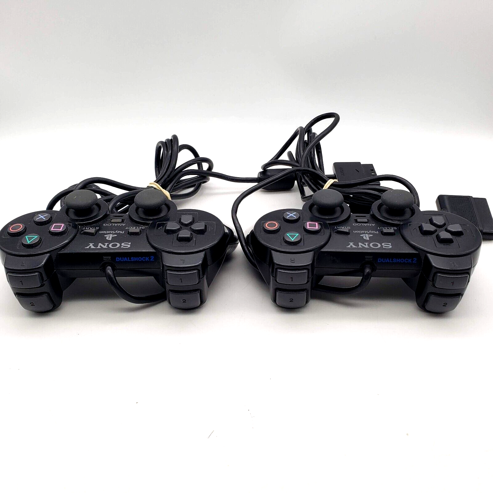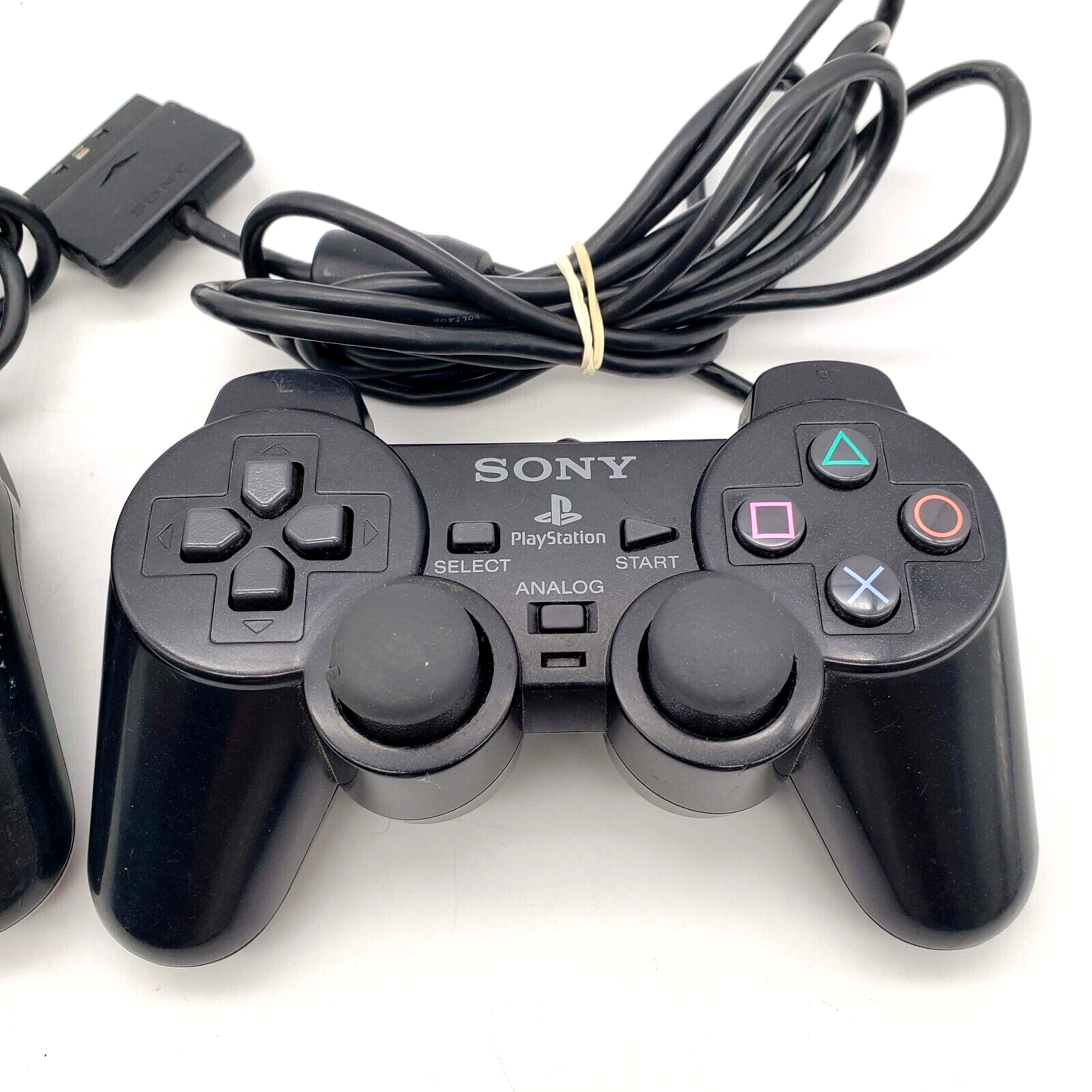 Lot Of 2 PlayStation 2 PS2 Official OEM Black DualShock 2 Controllers SCPH-10010