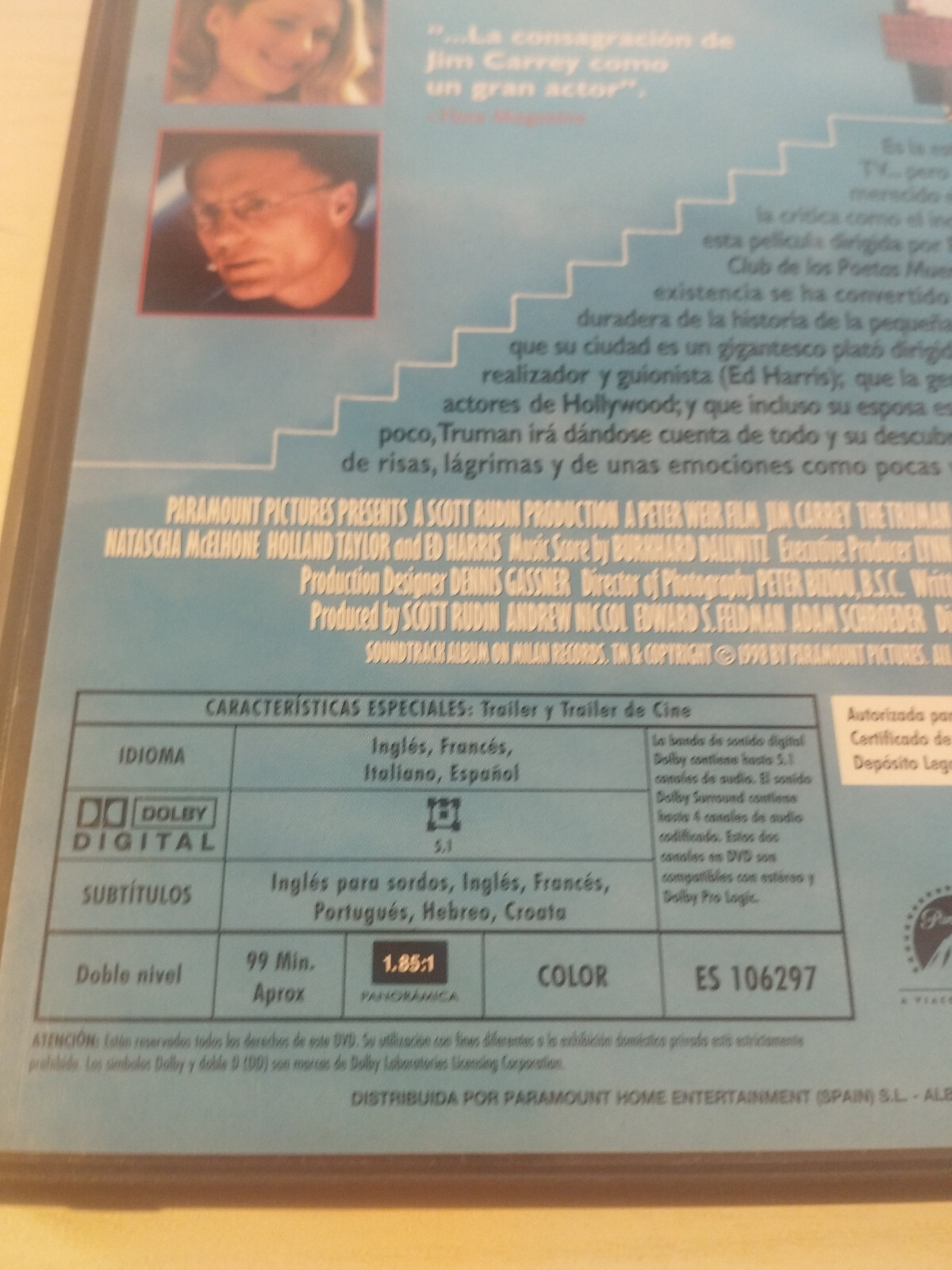 El The de Show Jim Carrey Peter Weir - DVD Regione spagnola inglese 2 del mattino