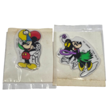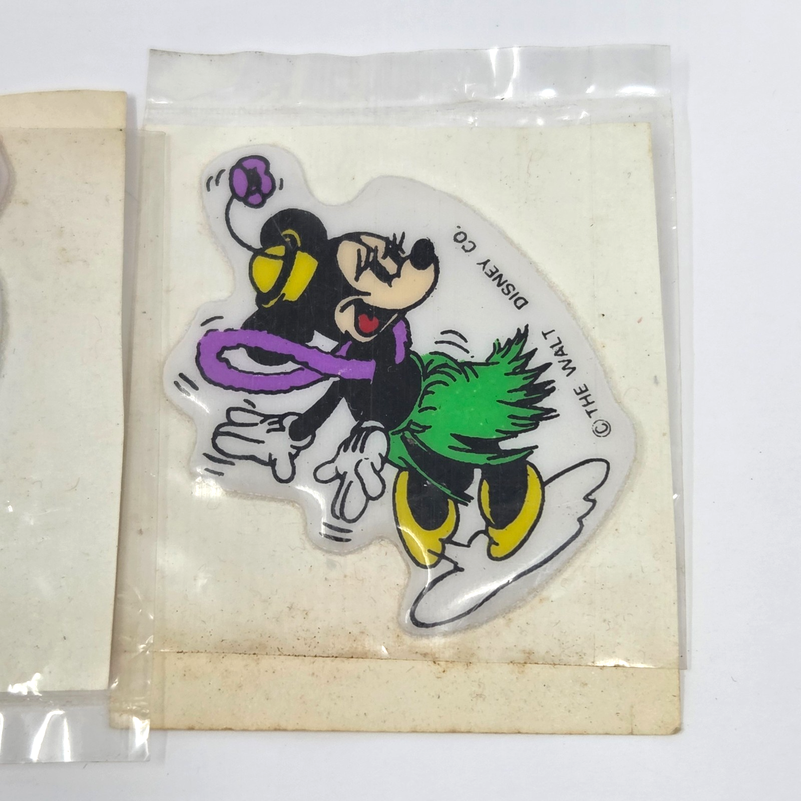 2 VINTAGE 1970'S DISNEY MICKEY W/ BALLOONS + MINNIE MOUSE HAWAIIAN PUFFY STICKER