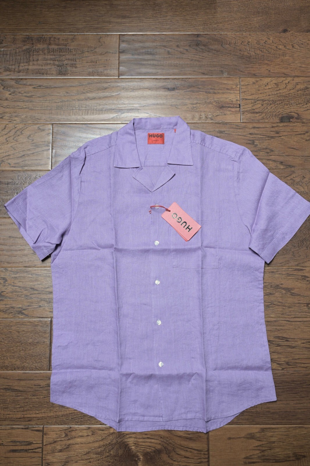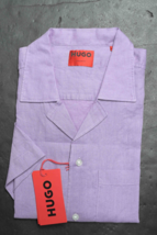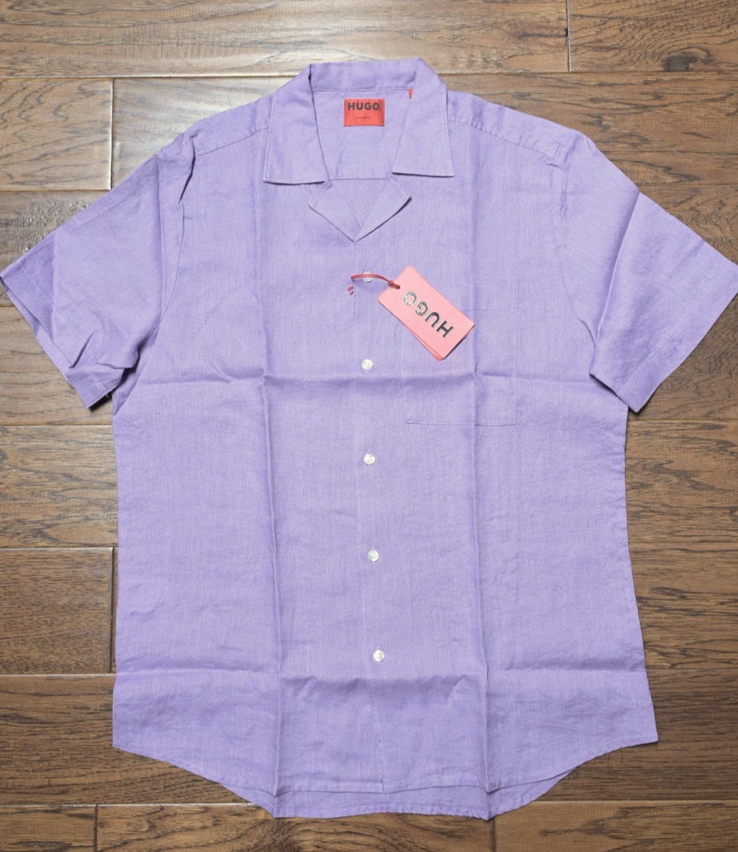 NWT Hugo Boss Men's Ellino Short Sleeve Straight Fit Purple 100% Linen Casual Shirt