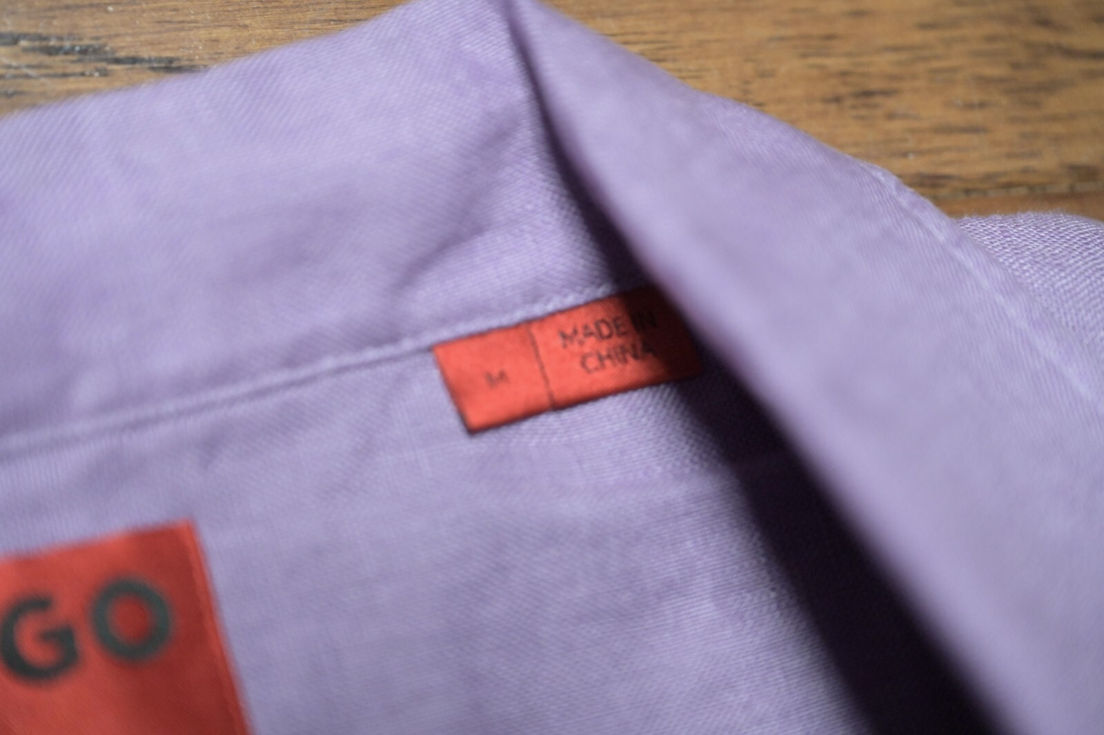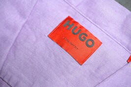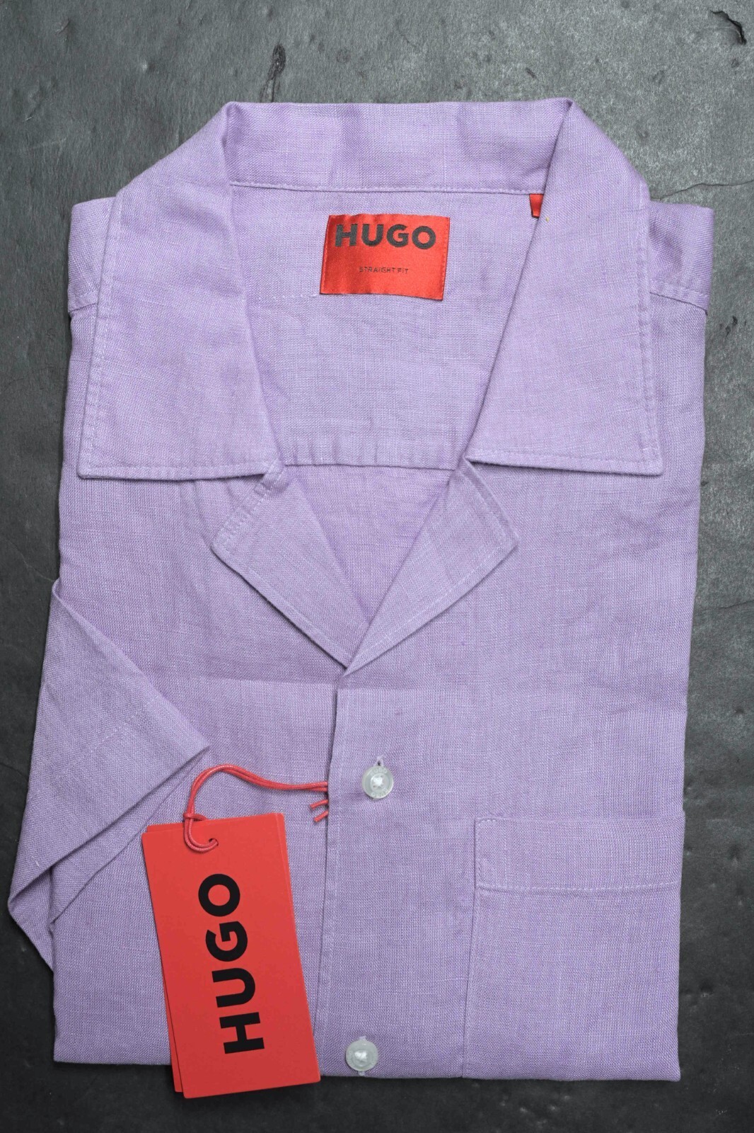 Hugo Boss Men's Ellino Short Sleeve Straight Fit Purple Linen Casual Shirt M