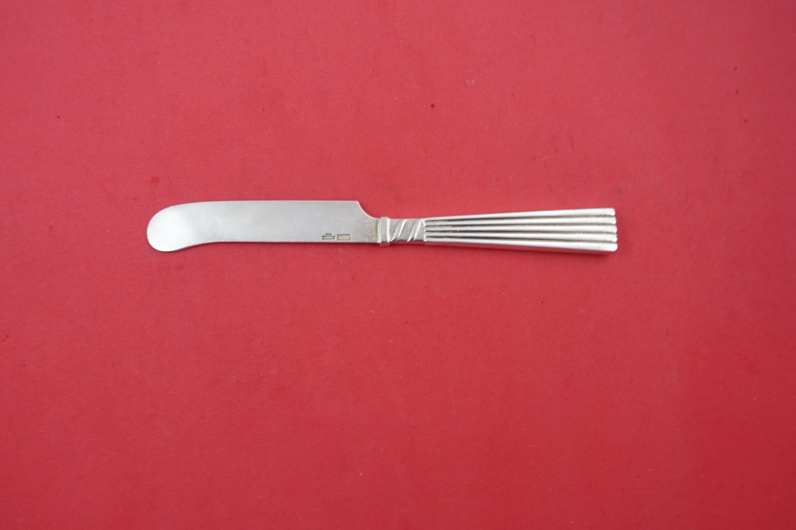 Plisse aka Pleated by E. Dragsted sterling silver Butter Spreader hollow handle, 6 1/2". It is not monogrammed and is in excellent condition.