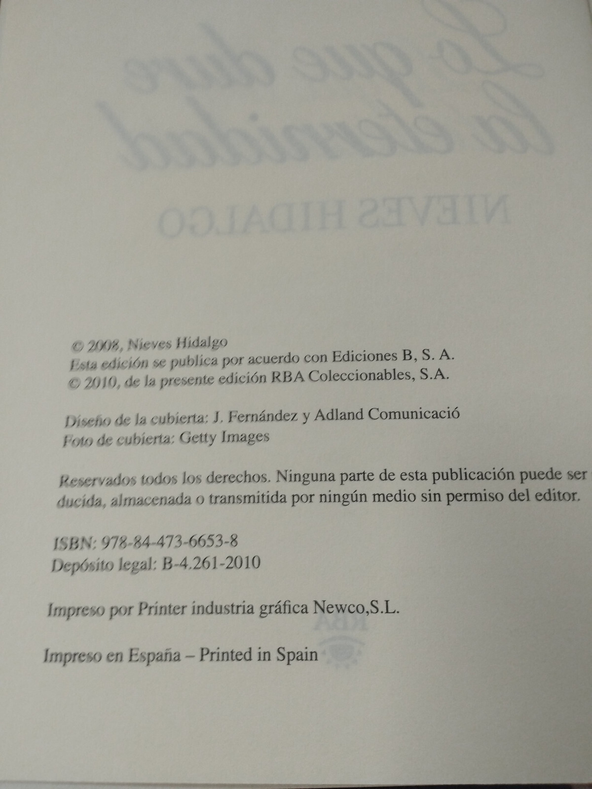 Que Eternity Lasts Nieves Hidalgo Romantica RBA 2010 ? BUCH Spanisch Am