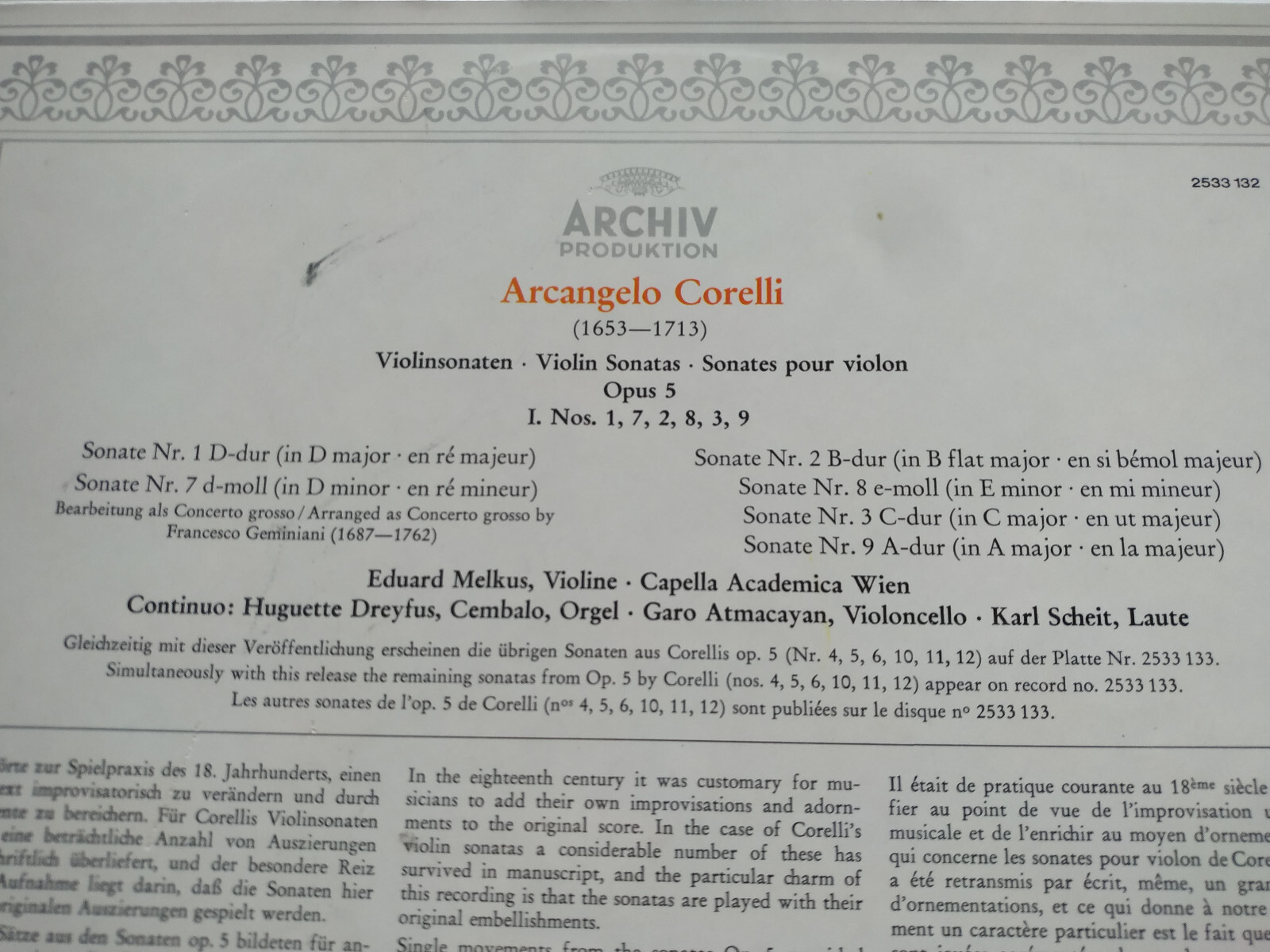 Corelli Violin Sonatas no 1-7-2-8-3-9 Eduard Melkus 1973 LP 12 " vinyl VG/VG