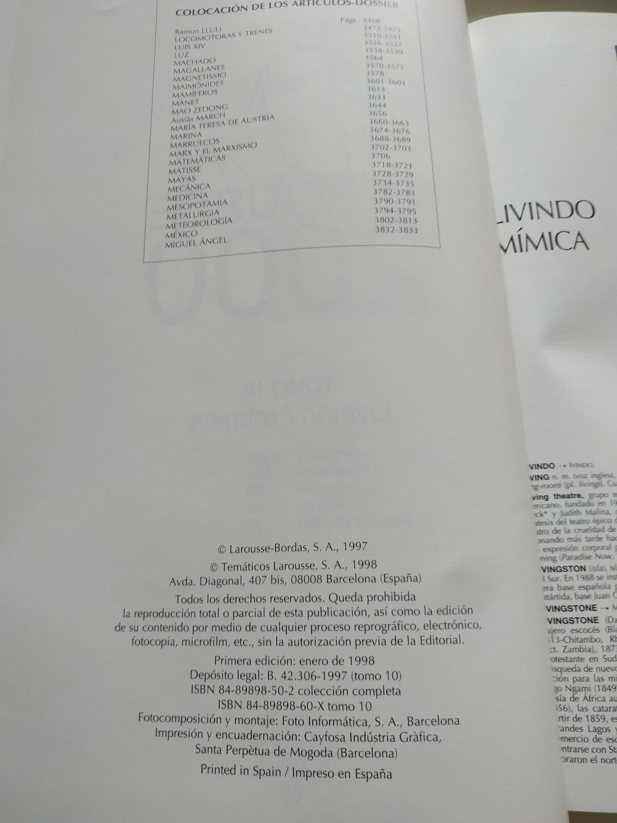 Larousse 2000 Band 10 Livindo - Mimica Planeta 1998 Encicopedia Spanisches BUCH