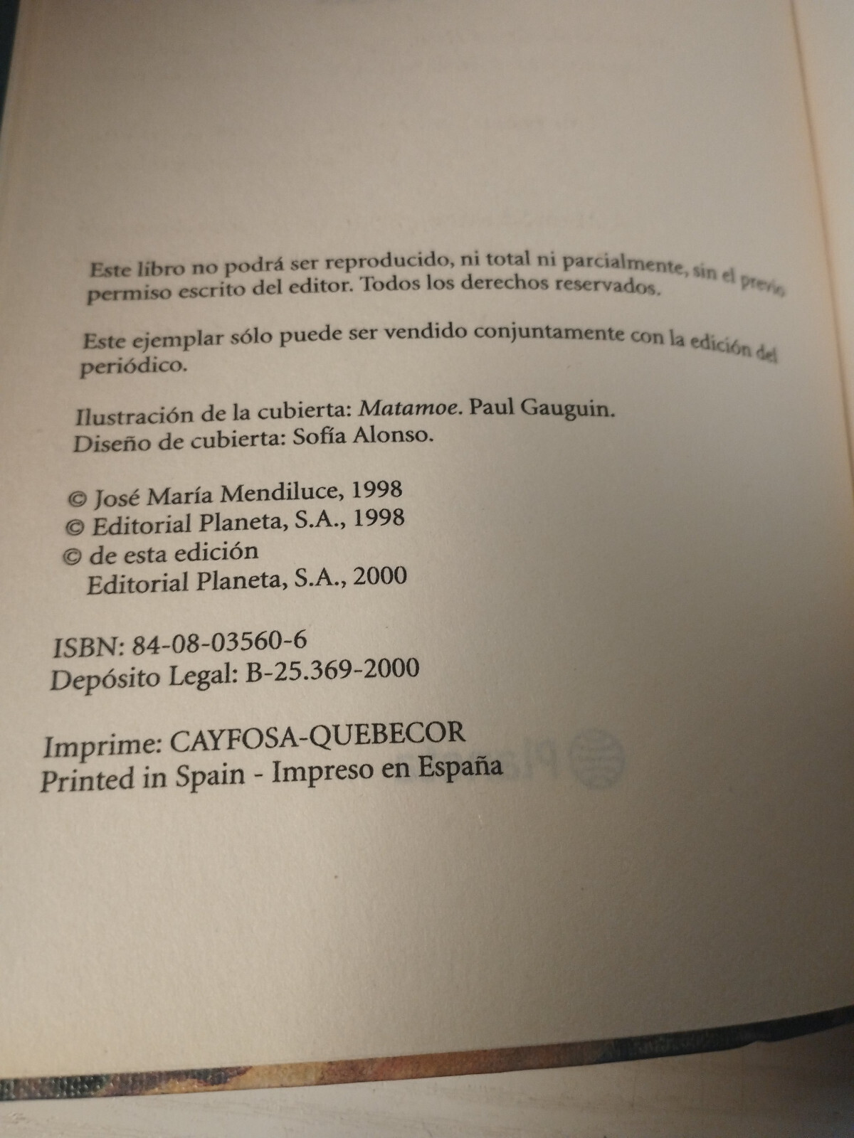 Pura vida JOSE MARIA Mendiluce Kollektion Premio Planeta 2000 Buch Spanisch Am