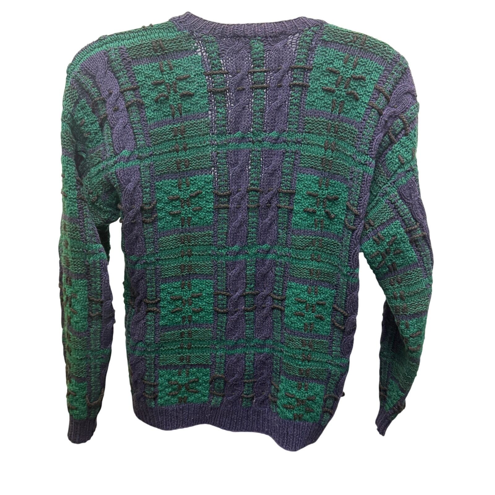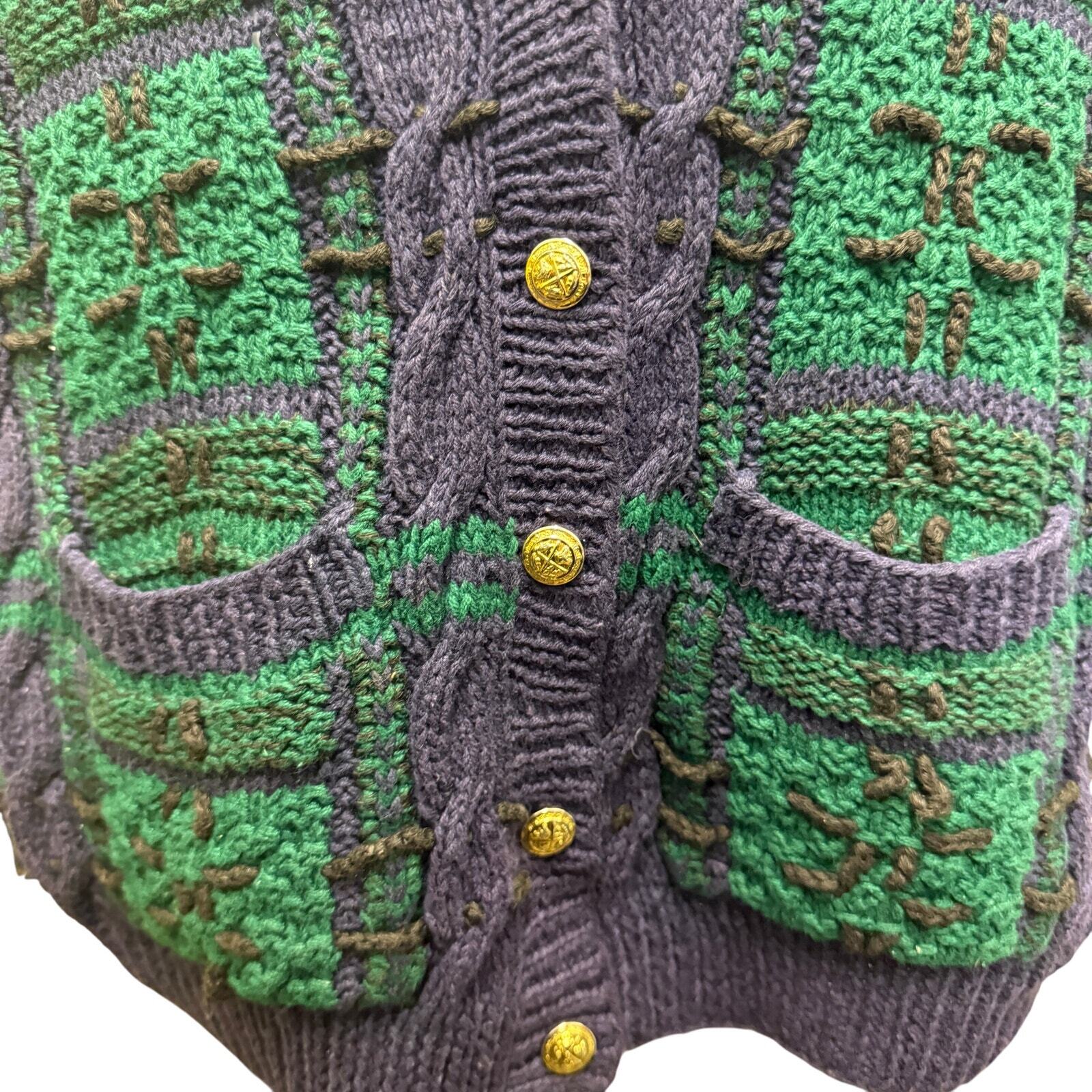 Vintage Robert Scott Ltd Womens M Wool Cardigan Green Navy Plaid Chunky Knit