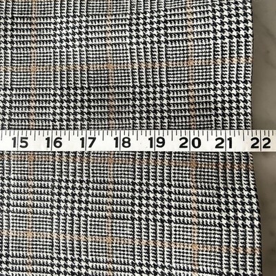 Pendleton women's size 8 wool plaid blazer. Black, white and tan/gold herringbone plaid wool blazer is collared with a button front and shoulder pads. Long sleeves, fully lined. 100% Virgin Wool; dry clean. Excellent condition. Measurements are taken across flat, unstretched garment: