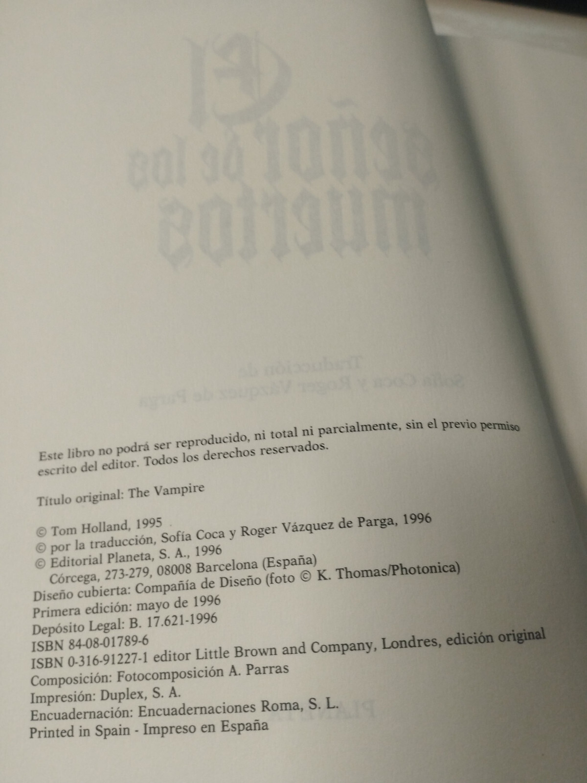 El señor de los muertos Tom Holland Planet 1996 - Book Spanish Am
