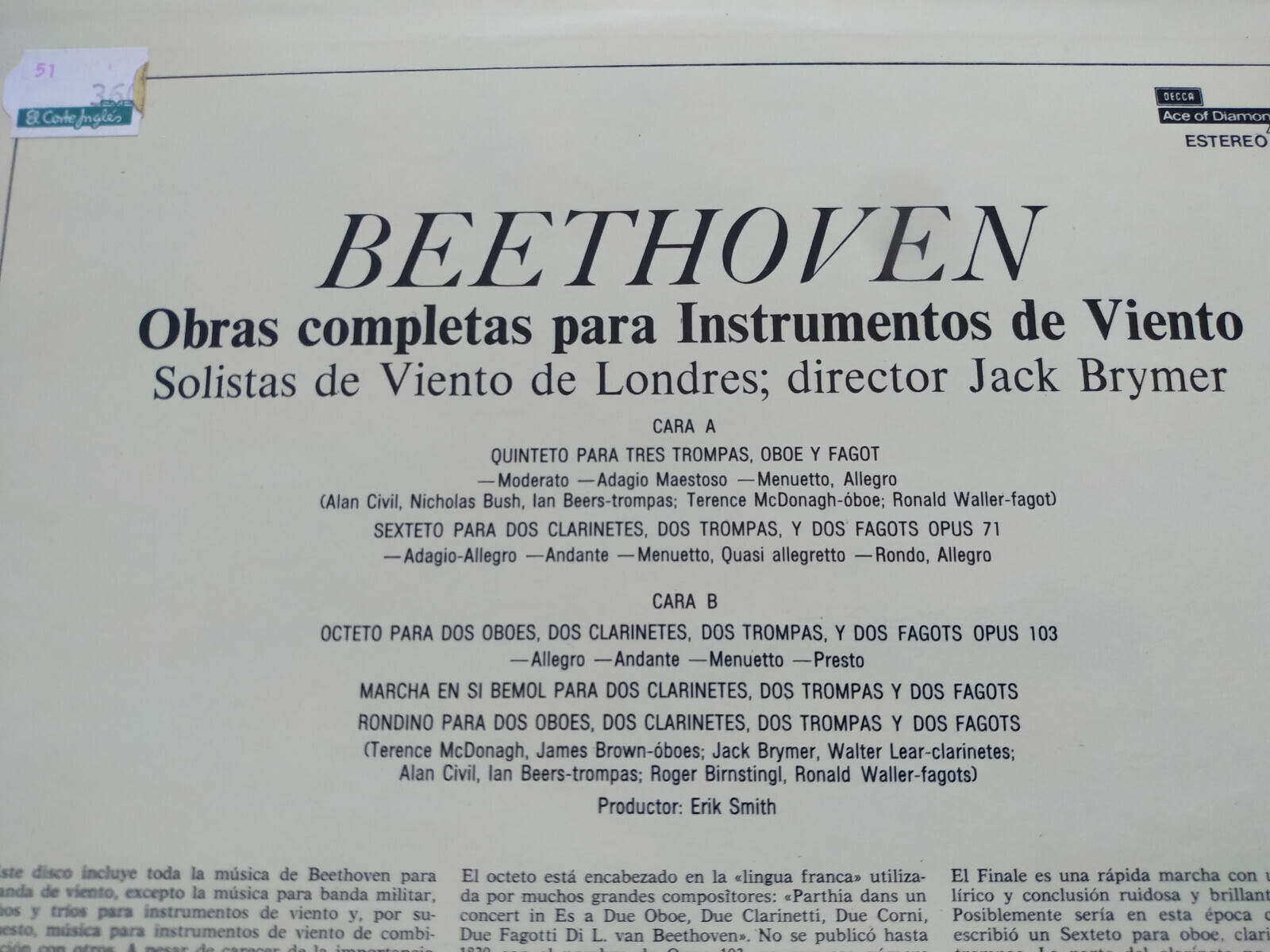 Beethoven Complete works viento Brymer 1977 LP 12 " vinyl Vg/Vg