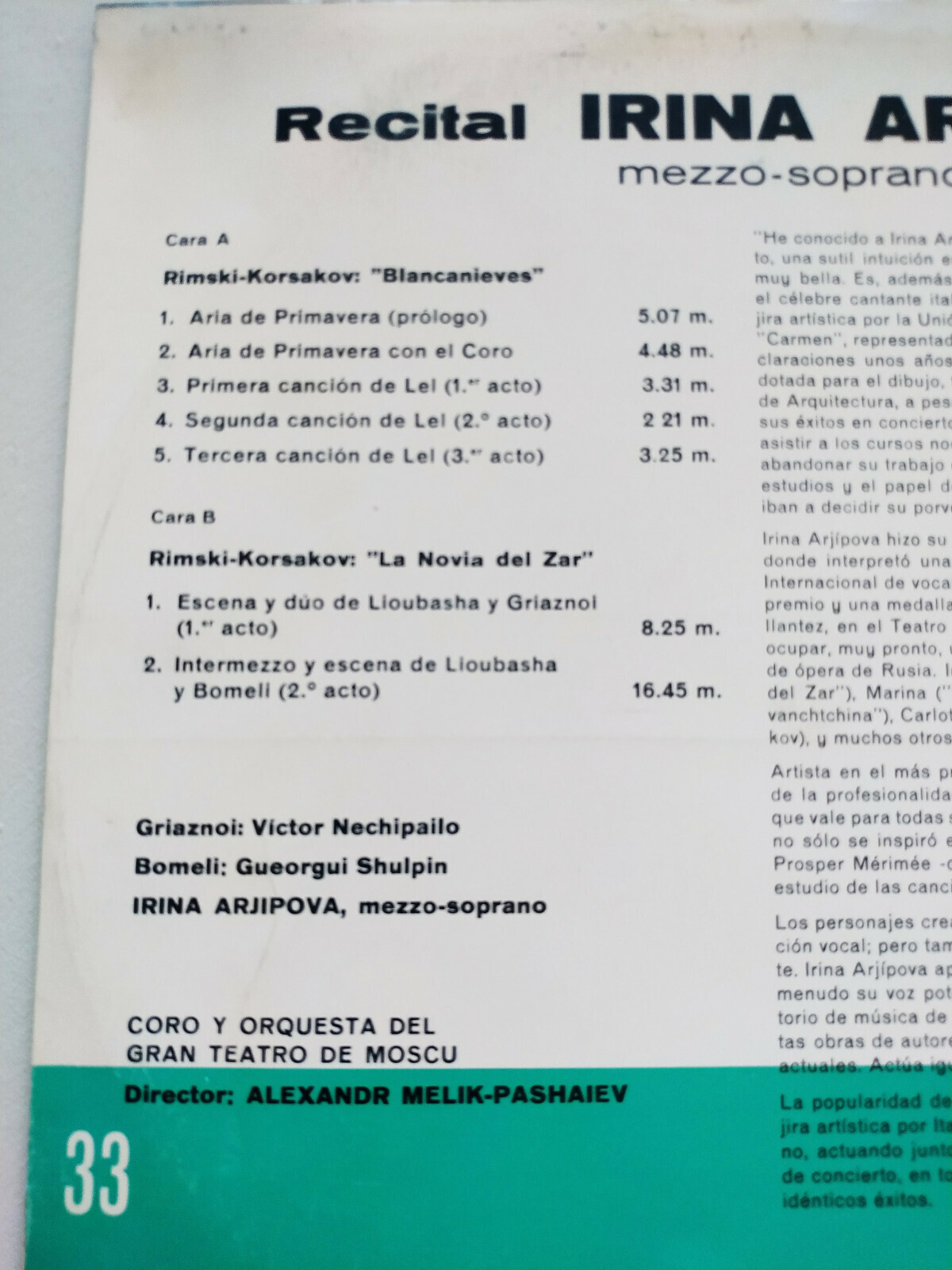 Irina Arjipova Recital 1970 Edizione Spagnola - LP Vinilo 12" VG/VG - 2T
