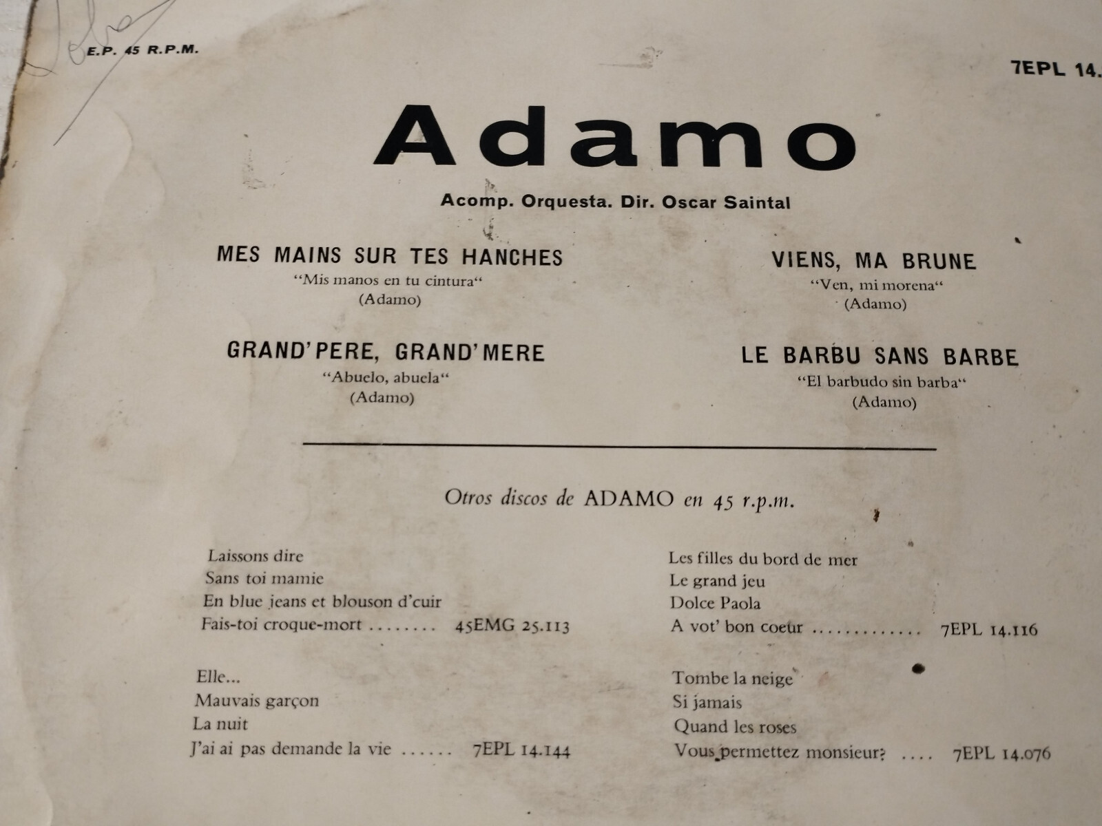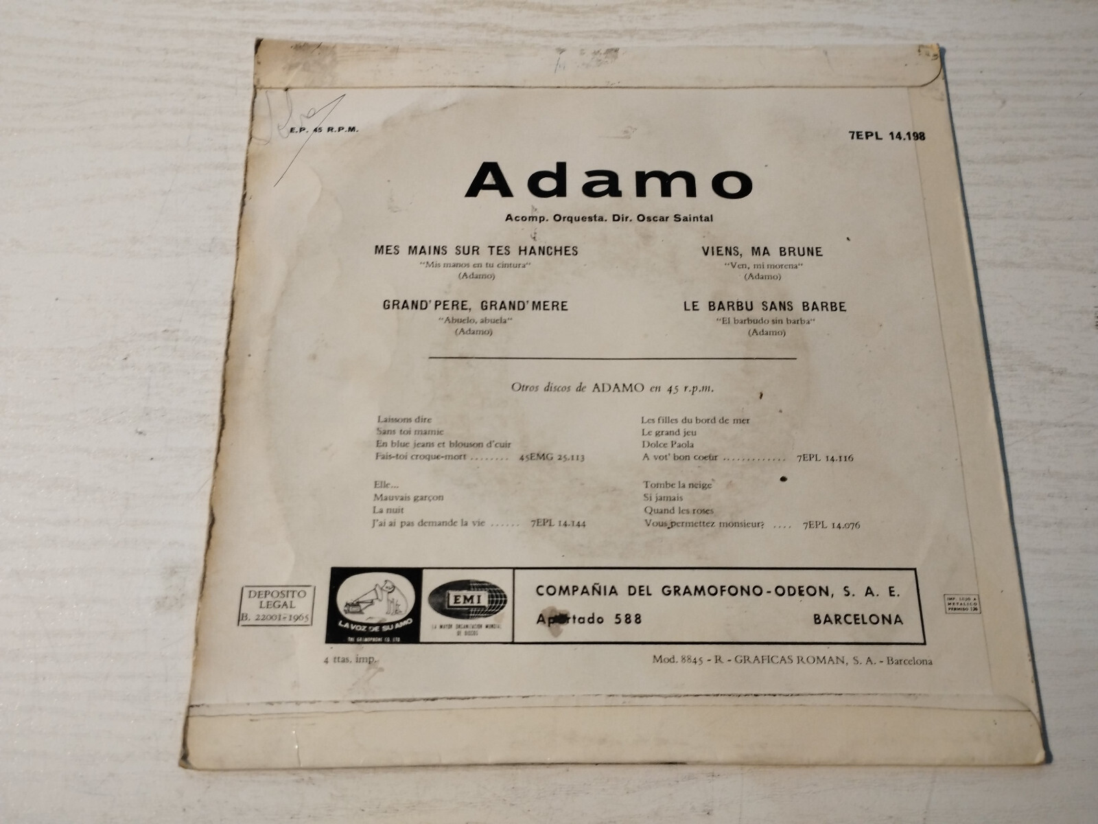 ADAMO Month Mains Sur Tes Hanches 1965 EMI - Single LP Vinilo 7 "VG/G+