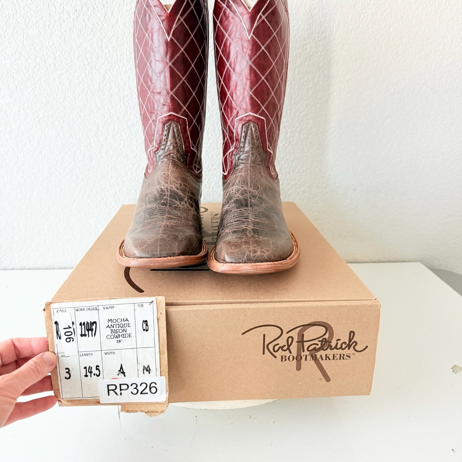 Rod Patrick Mens Cowboy Boots 14.5A Brown Mocha Bison Leather Soles Square Toe