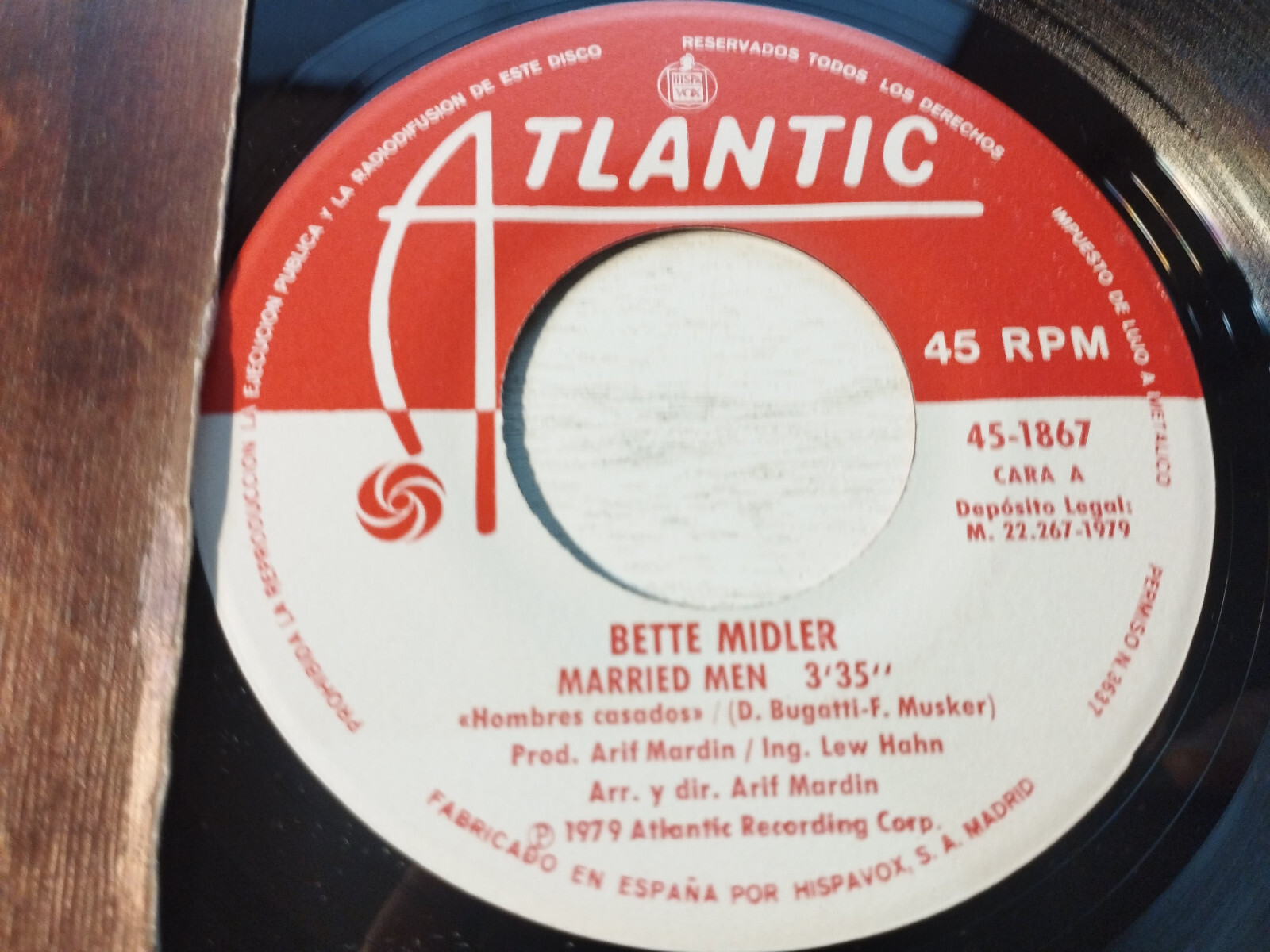 Bette Midler Married Men 1979 Atlantic - Single LP Vinilo 7 "VG/VG