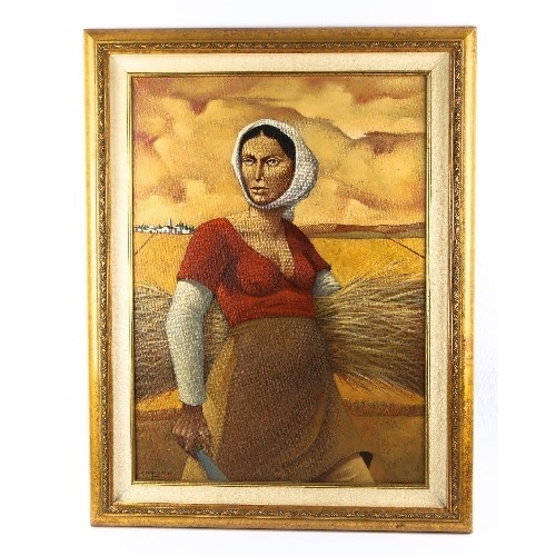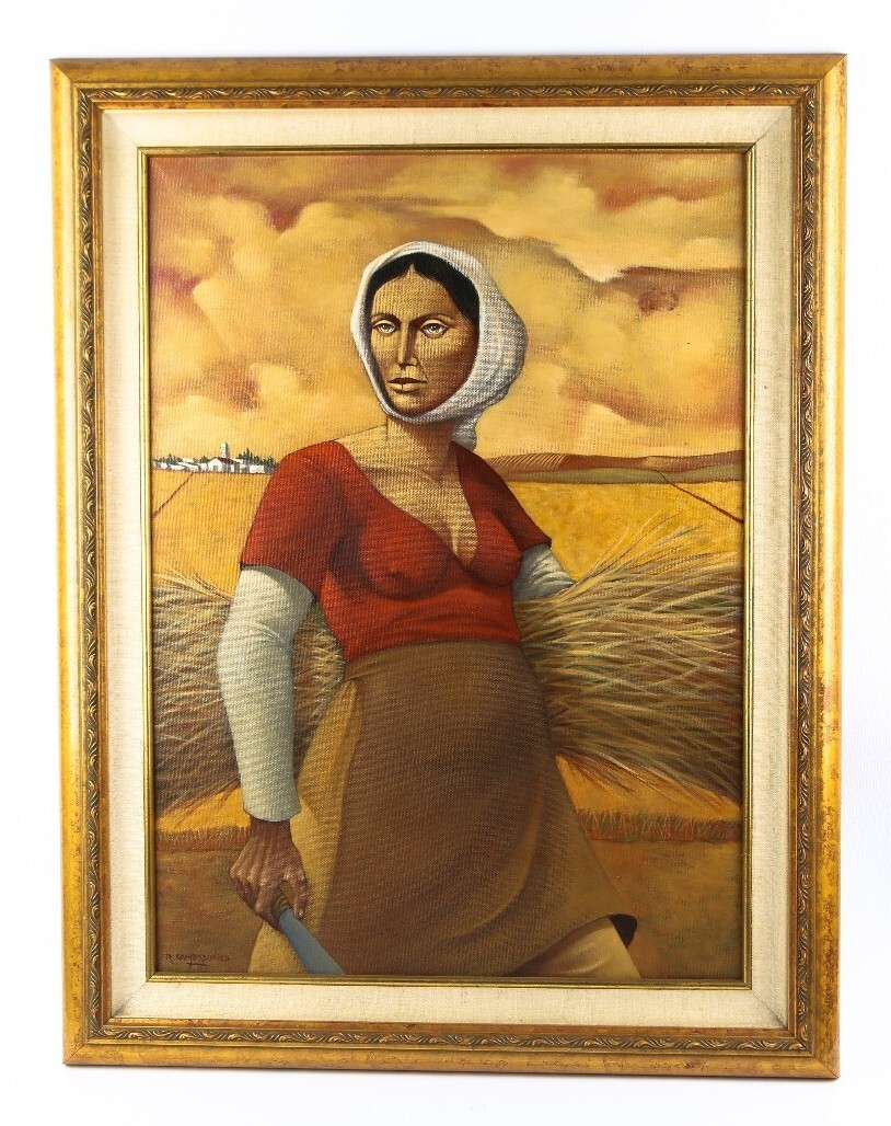 Untitled (Campesino Mujer Gathering Trigo) Por Rodolfo Campodonico Oil en Lienzo