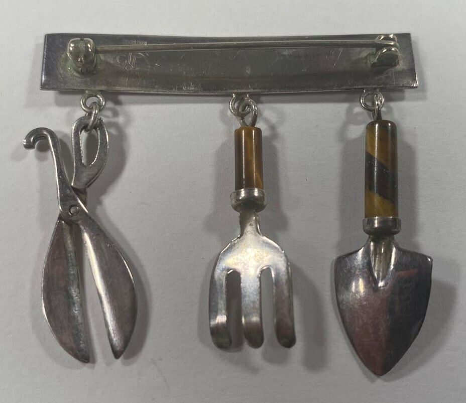 GFMW "Samen" Sterlingsilber Gartenwerkzeuge Brosche Great Falls Metal Works