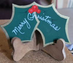 Wood Merry Christmas Tabletop Decoration With Wood Stand Holiday Festive Cute