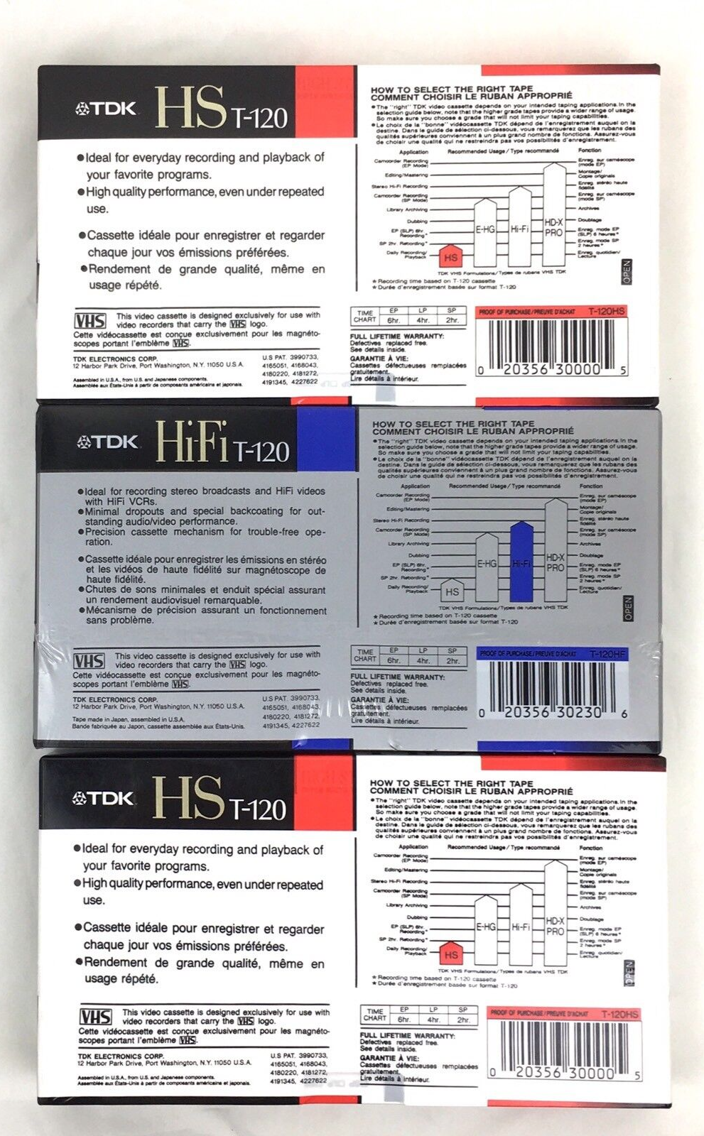 TDK VHS Tapes Mixed Lot of 3 High Standard and Extra High Grade T-120