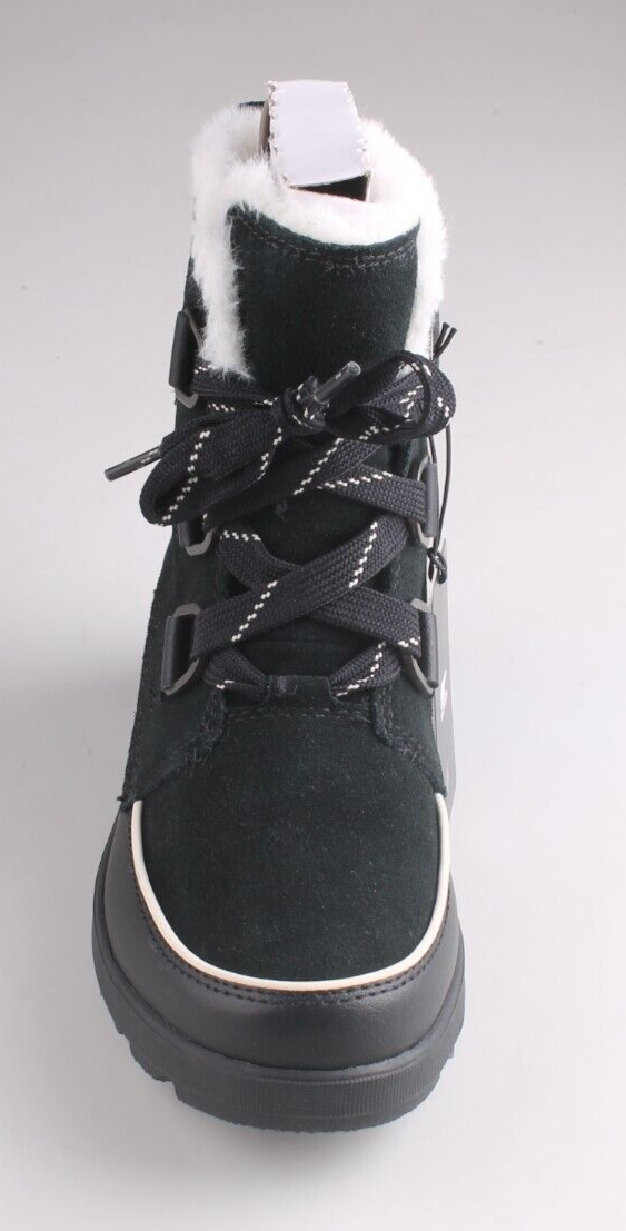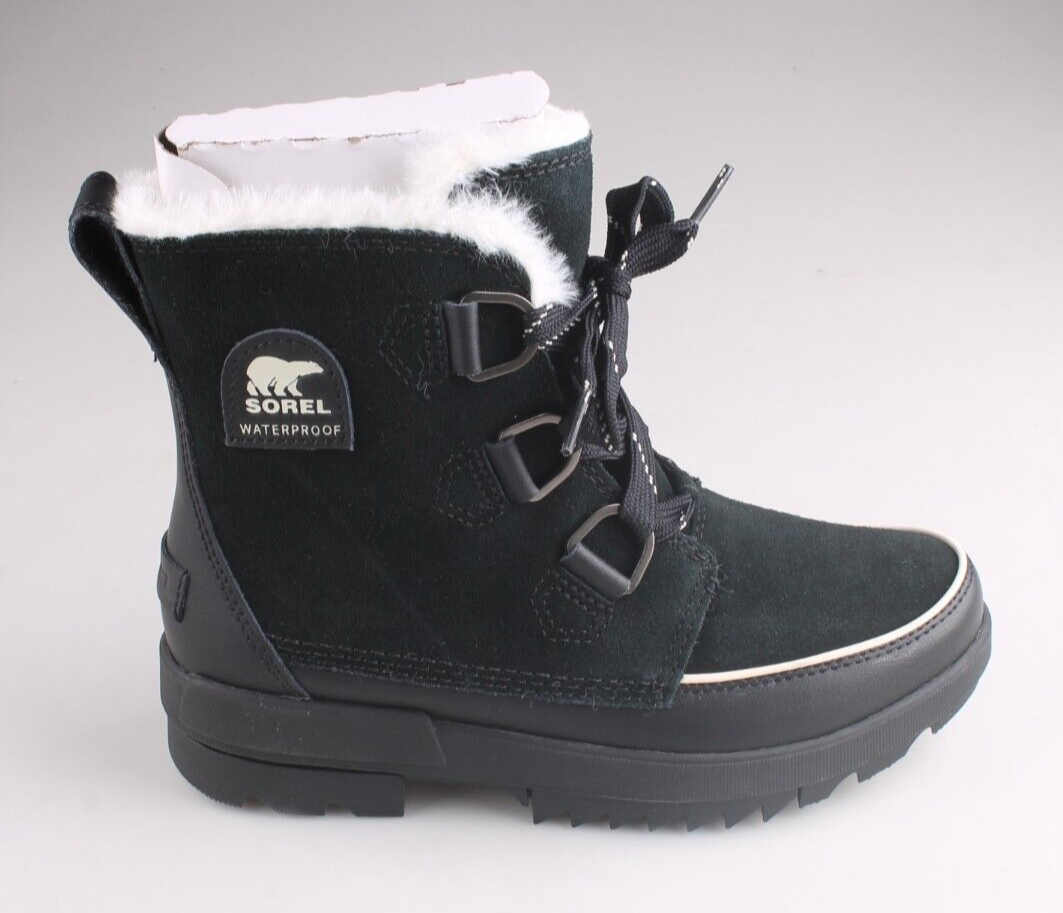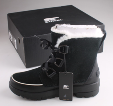 La bota de invierno Sorel Tivoli IV para mujeres. Nuevo en caja. Cuenta con una parte superior de cuero impermeable con un acento de adornos de piel. Esta bota de nieve con cordones en negro tiene un revestimiento de microfleece, plataforma de 1.25 pulgadas y tacon bajo. Ideal para viajar, ropa casual y ropa de actuacion en invierno, otoño y primavera. La suela esta hecha de caucho para la traccion, y esta aislado para el calor.