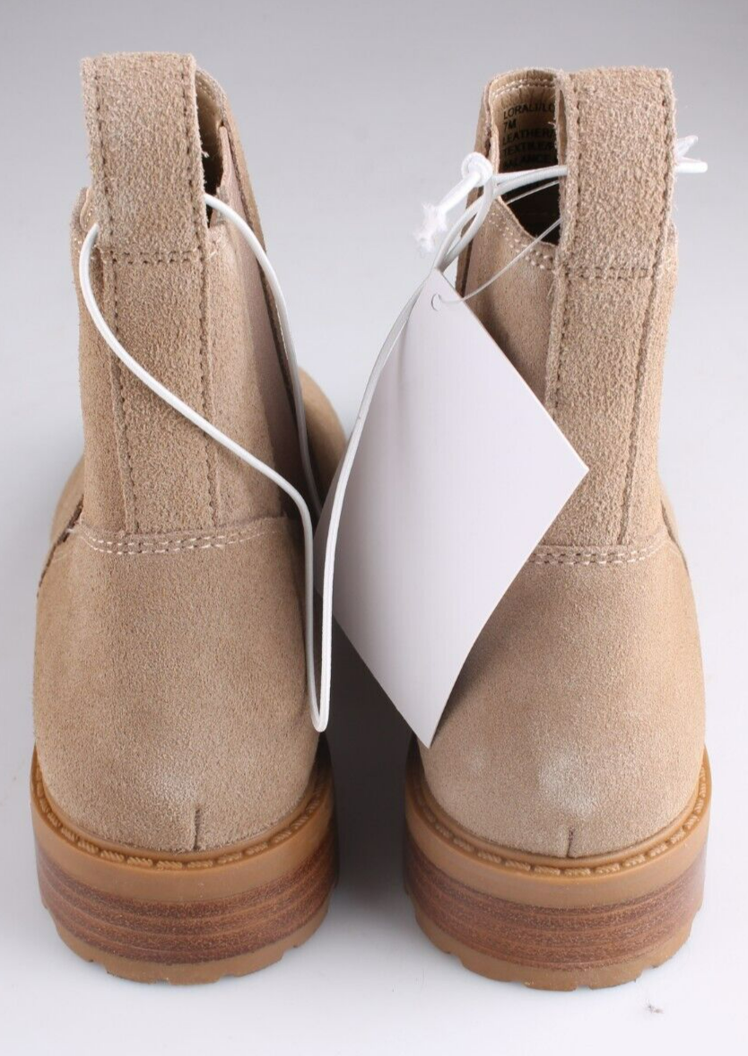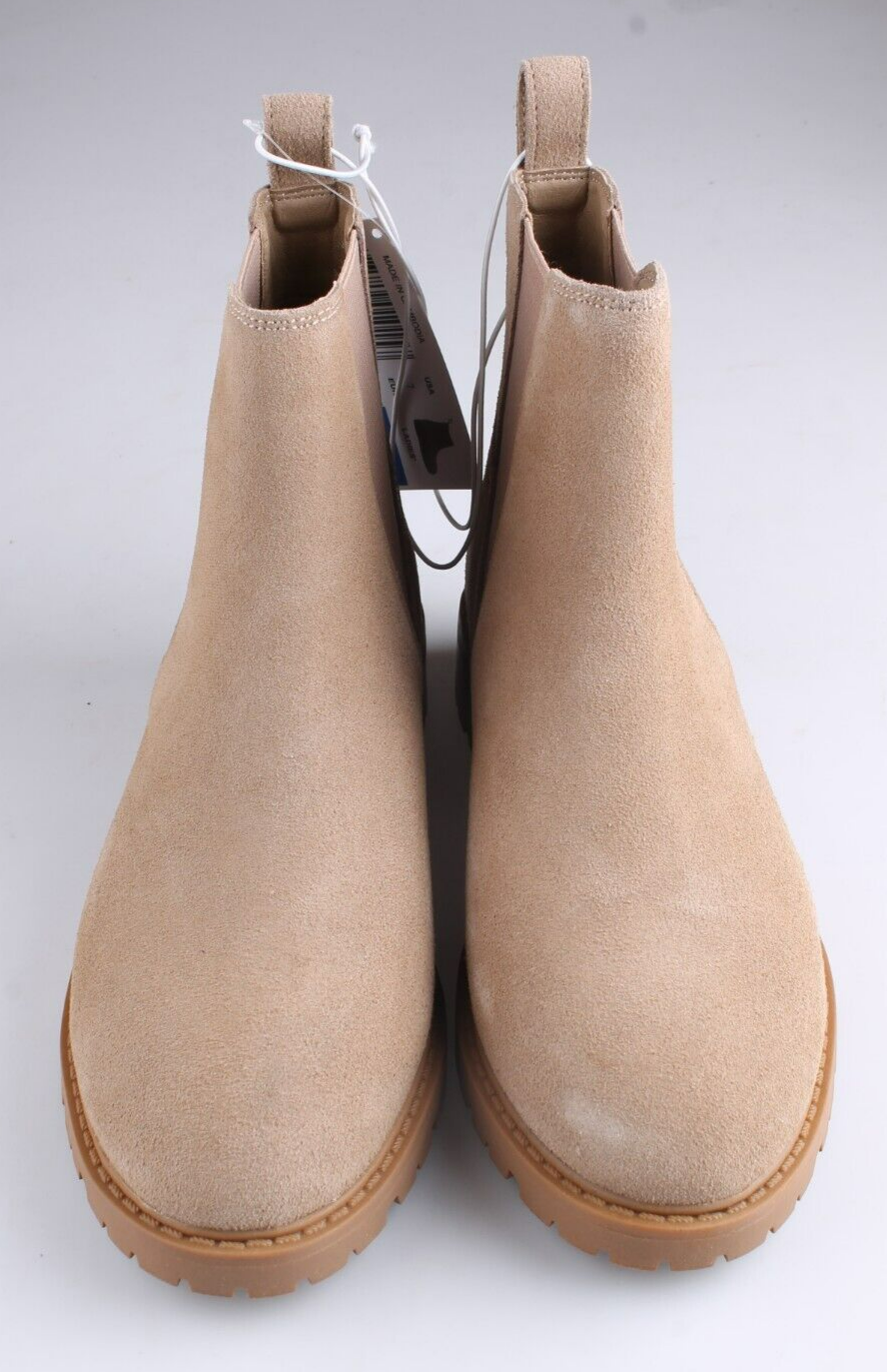 Steve Madden 'Lorali' Tan Suede Boot es una elegante bota Chelsea con forma de punta de almendras. ¡Nuevo en la caja! Cuenta con un cierre de extraccion, tacon de bloque bajo y suela de goma TPR. El arranque esta diseñado para varias ocasiones, incluidos viajes, fiestas, trabajo y mas. Hecho de revestimiento sintetico y material superior de gamuza, ofrece comodidad con características como soporte de arco y resistencia al agua. Disponible en los tamaños 6, 7, 9 y 11.