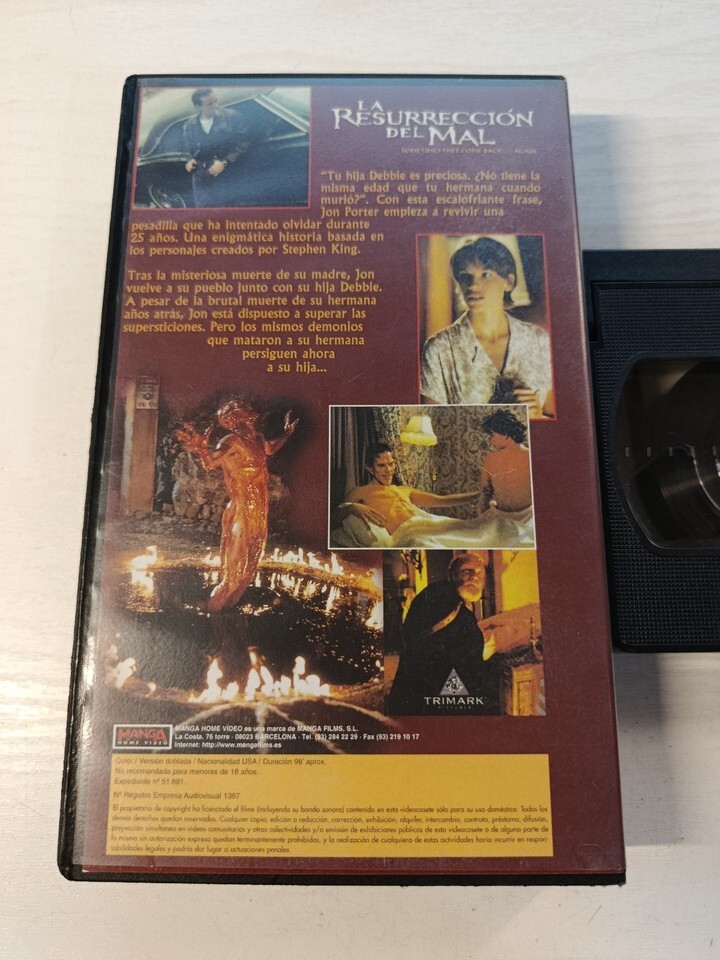 La resurrection del mal, parfois ils reviennent, Stephen King , VHS, horreur, 1995, Manga Films, Trimark Pictures, PAL, espagnol, Hilary Swank,Michael Gross, Alexis Arquette, Adam Grossman, collectionStephen King , bande video, horreur vintage, annees 90, filmde culte, rarete, cinema surnaturel, collection, cassette VHS, classiquede magasin de video