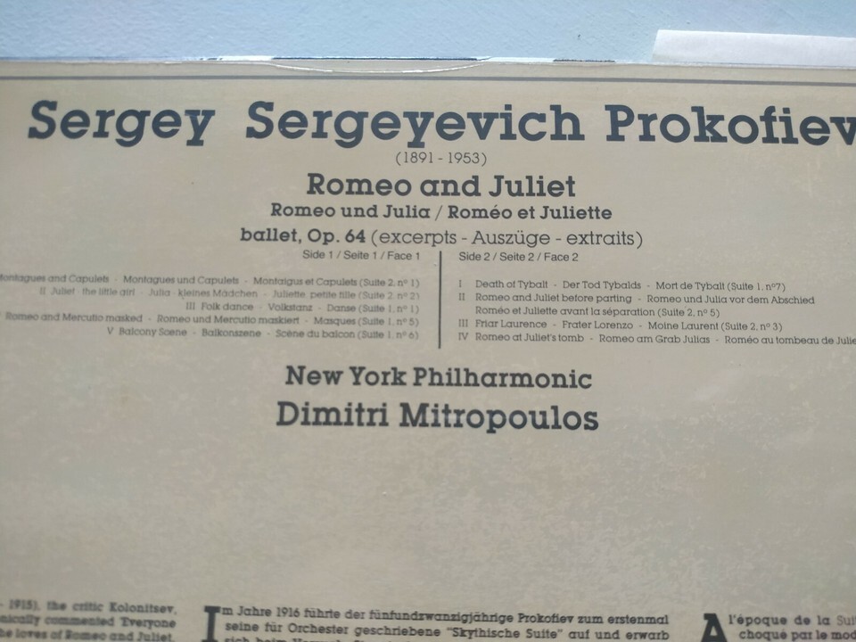 Prokofiev Romeo and Juliet Ballet Mitropoulos 1958 CBS - LP 12 " vinyl VG/VG AM