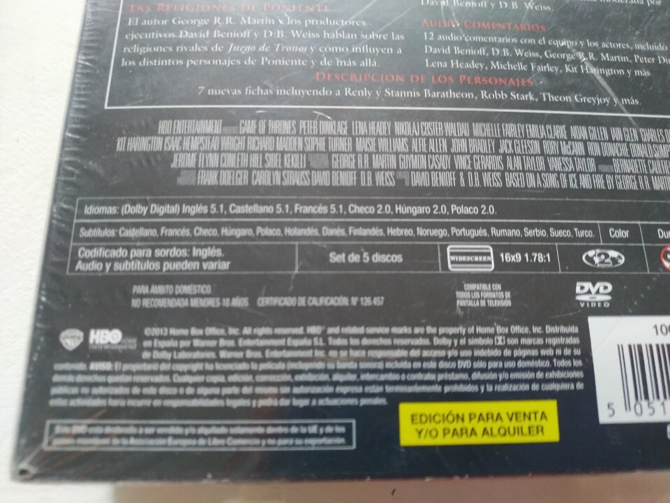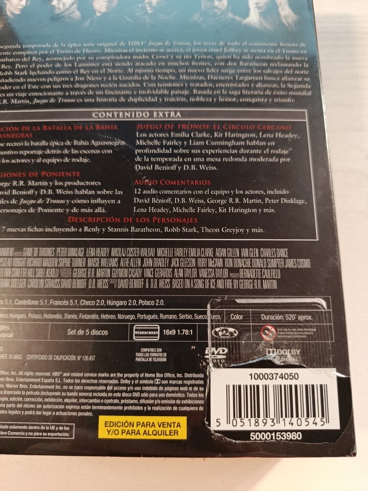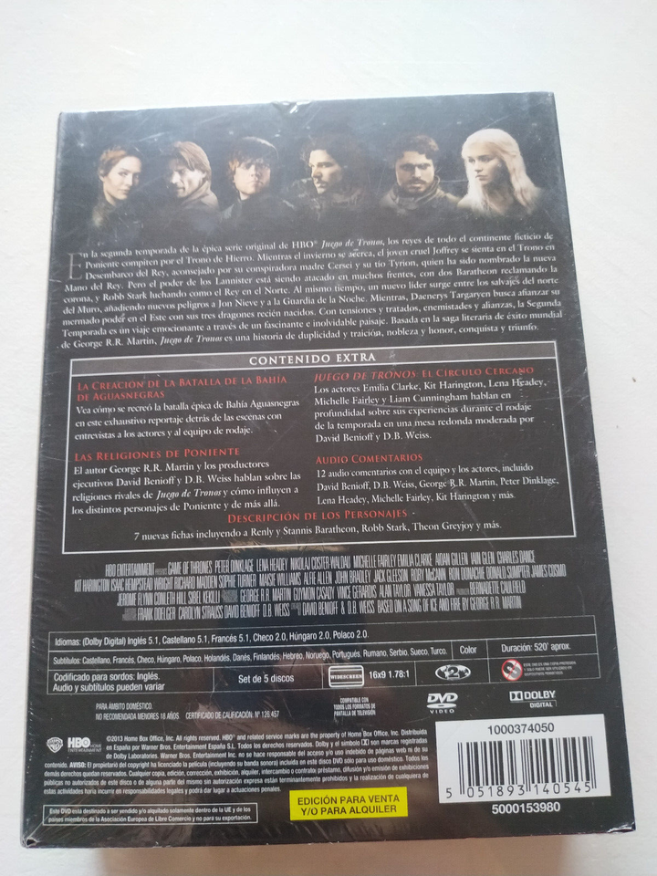Juego De Tronos Segunda Temporada Completa DVD Español Inglés Reg 2 Nueva 3T