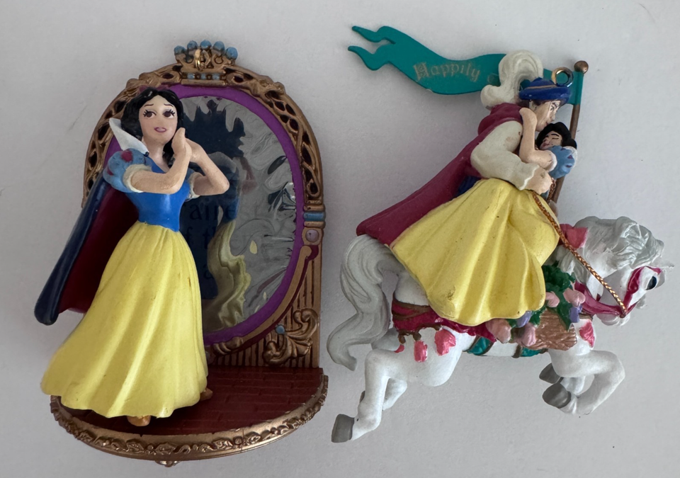 Lot 2 Vintage Enesco Disney Snow White Prince Christmas Ornaments