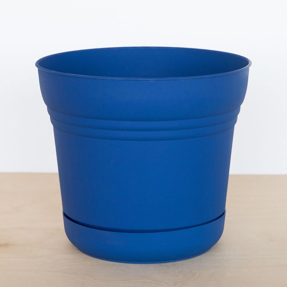 Planter w/Saucer Tray 12.8" H x 14.5" D Plastic, Matte Blue, Bloem Saturn 4-PACK
