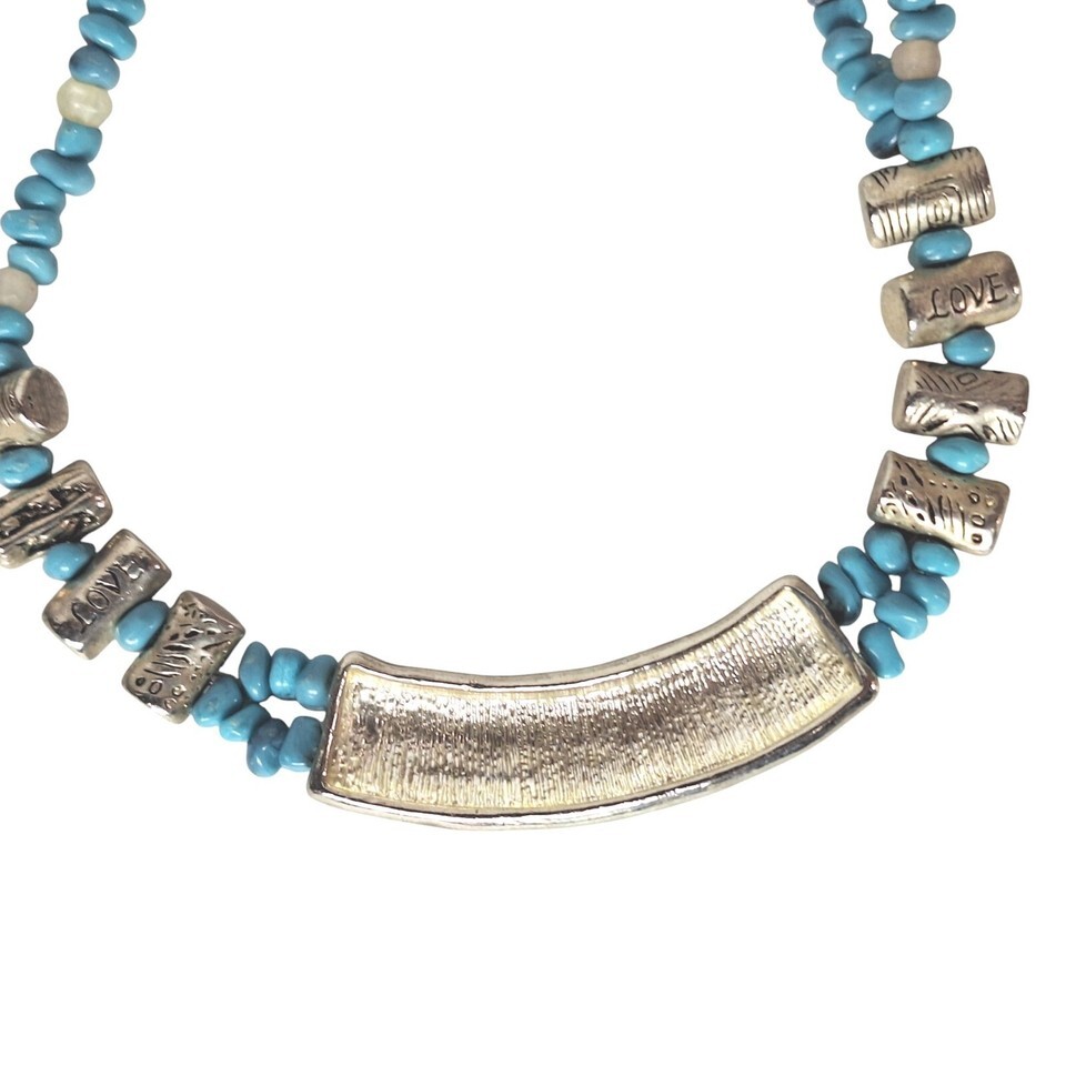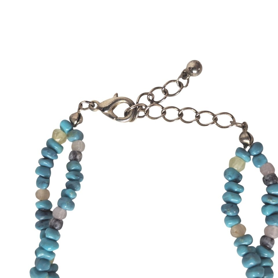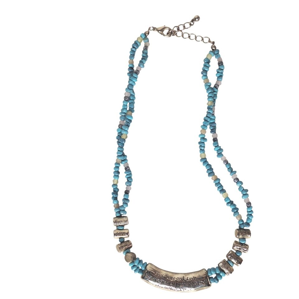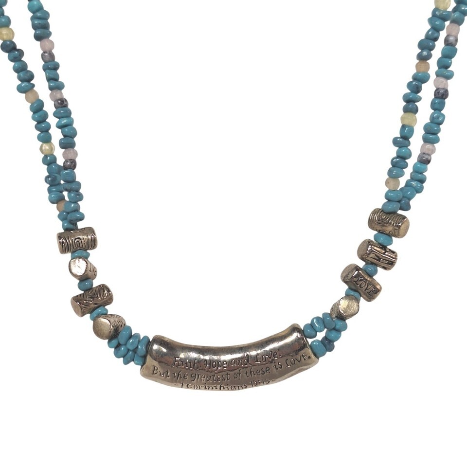 Vintage Multi Strand Blue Bead Stones Religious Bible Verse Necklace Jewelry