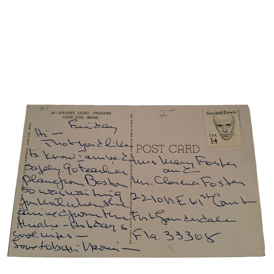 Postcard Nauset Lighthouse Orleans Cape Cod Massachusetts Chrome Posted
