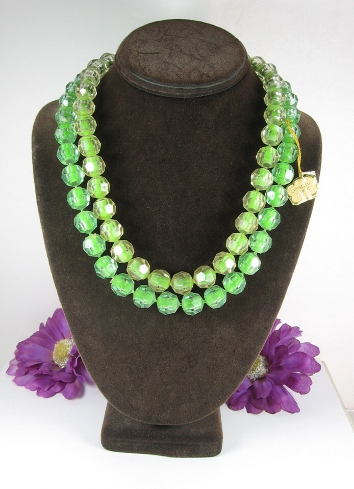 RICHELIEU Green CRYSTELLE POPPIT Vintage NECKLACE Double Strand MACYS Tags 22"