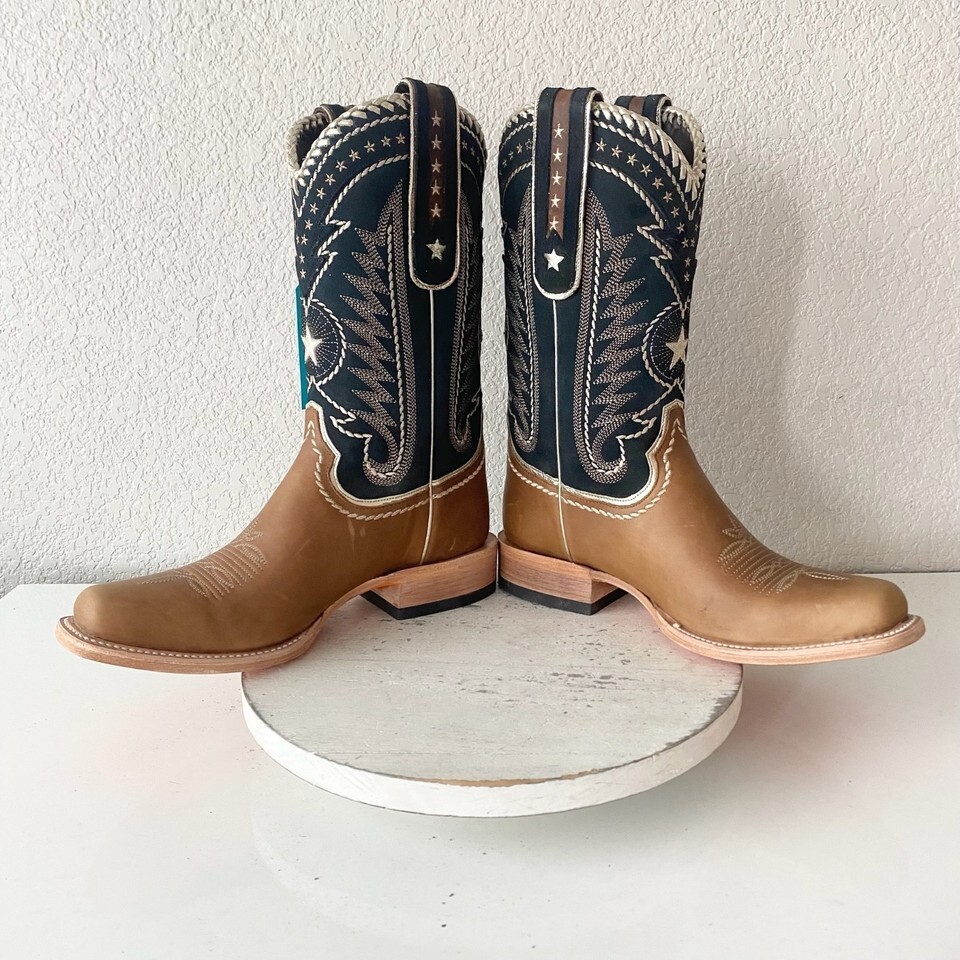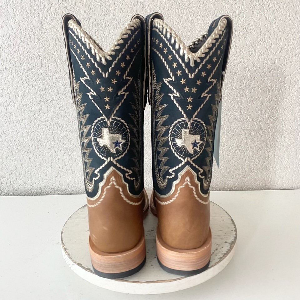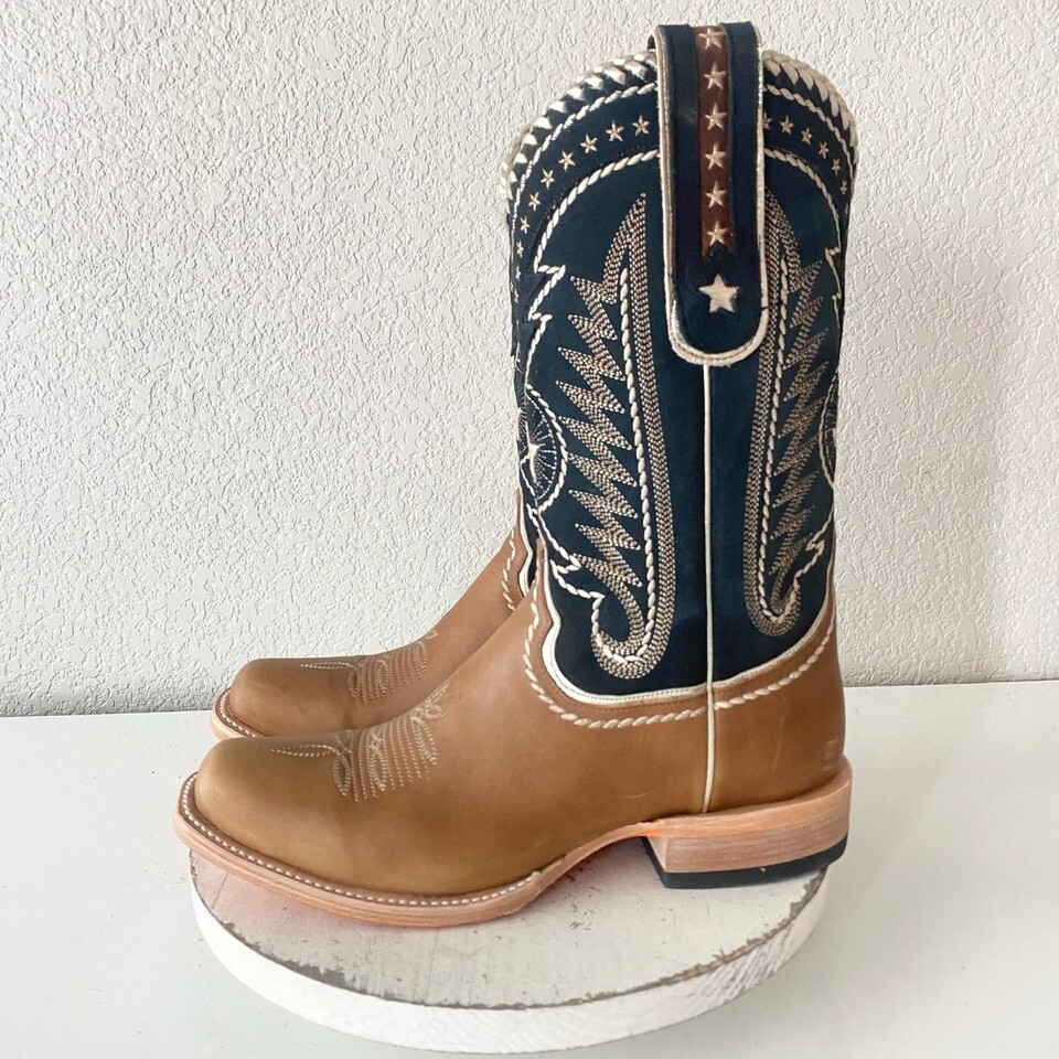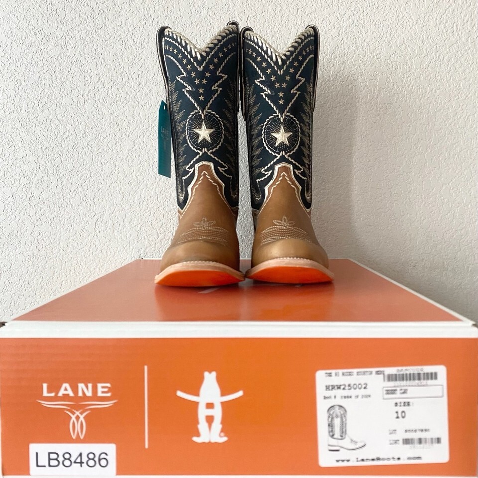 NEW Lane RODEO HOUSTON Mens Cowboy Boots 10 Brown Navy Leather Western Blunt Toe