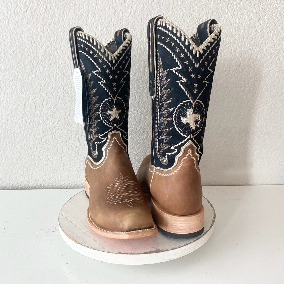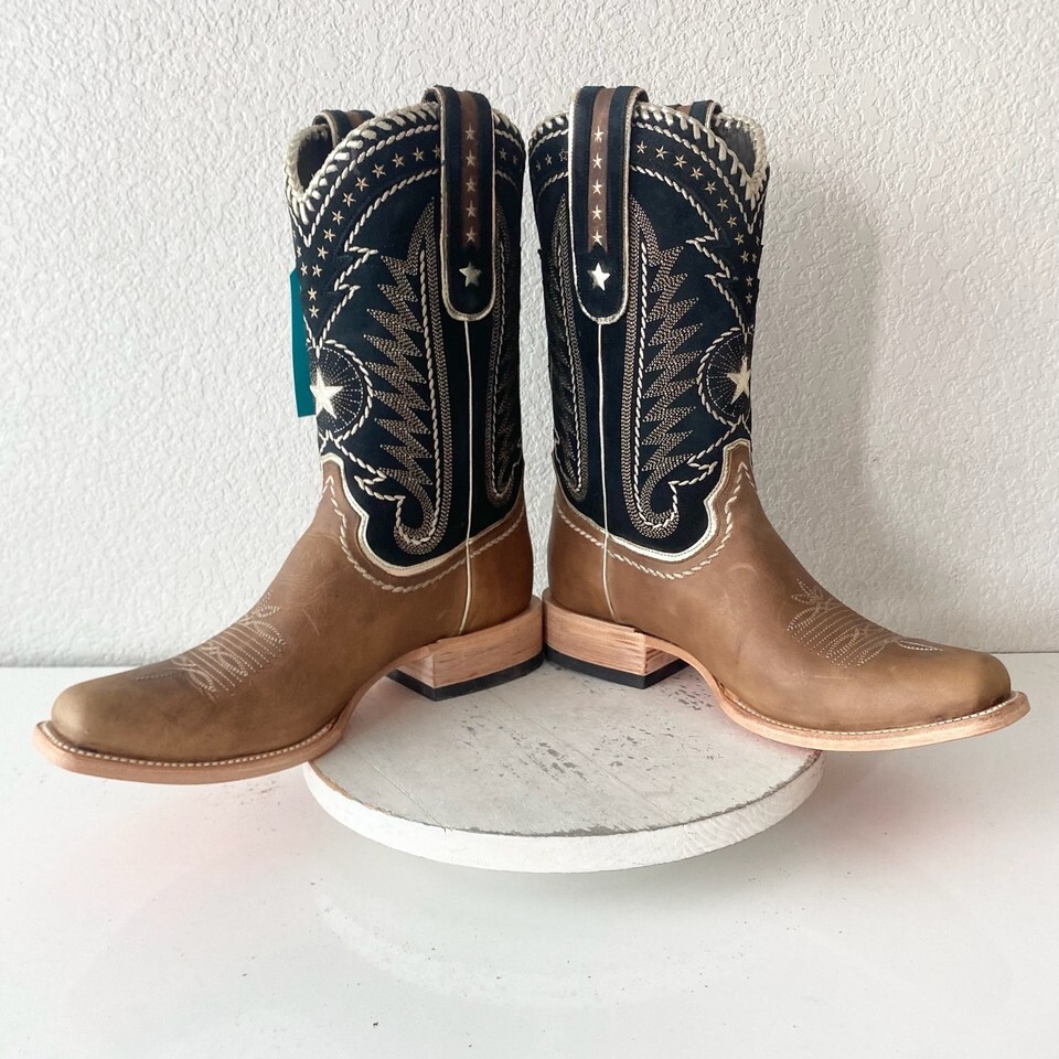Lane RODEO HOUSTON Mens Cowboy Boots 12.5B Brown Navy Leather Western Blunt Toe