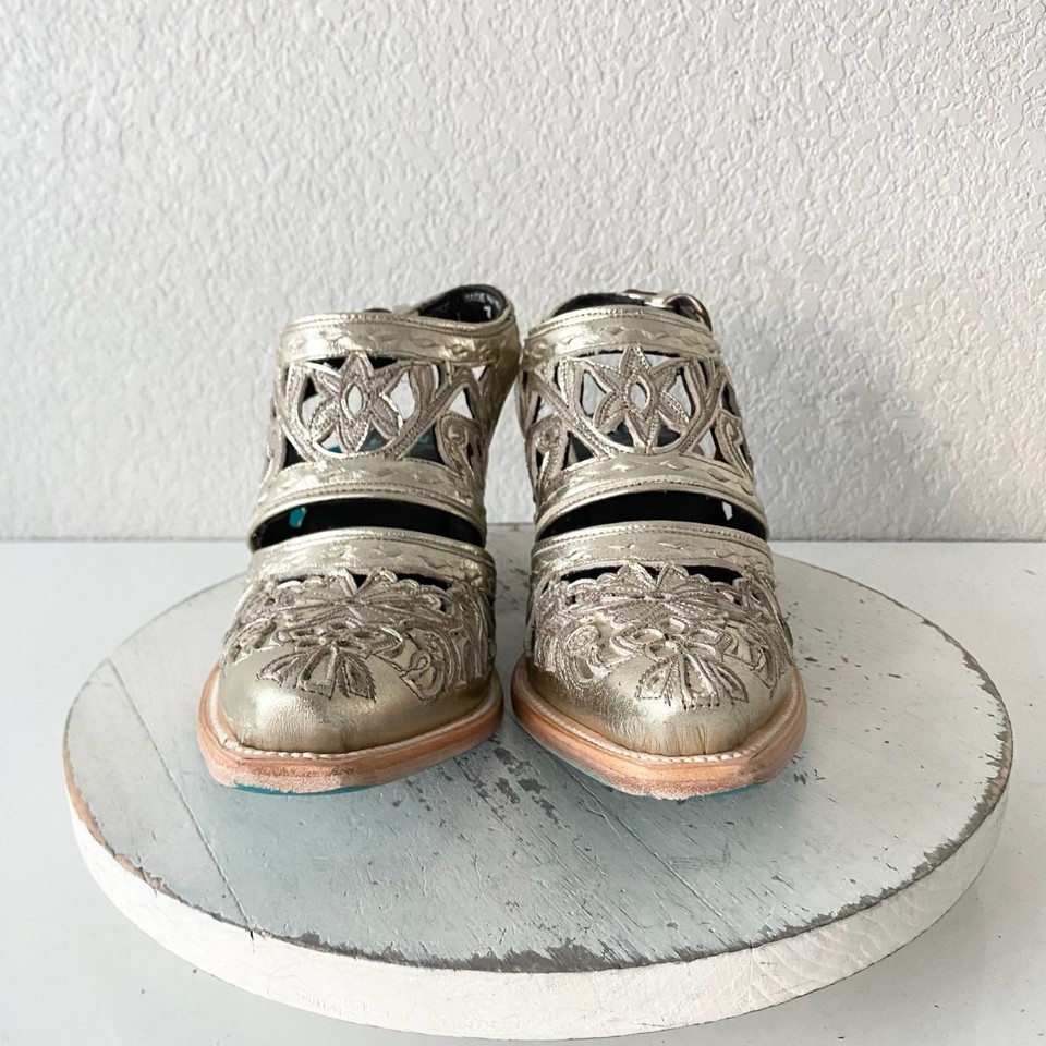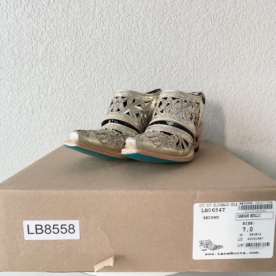 Lane Robin Slingback Mule Gold Cowboy Boots Womens 7 Cowgirl Western Short Ankle