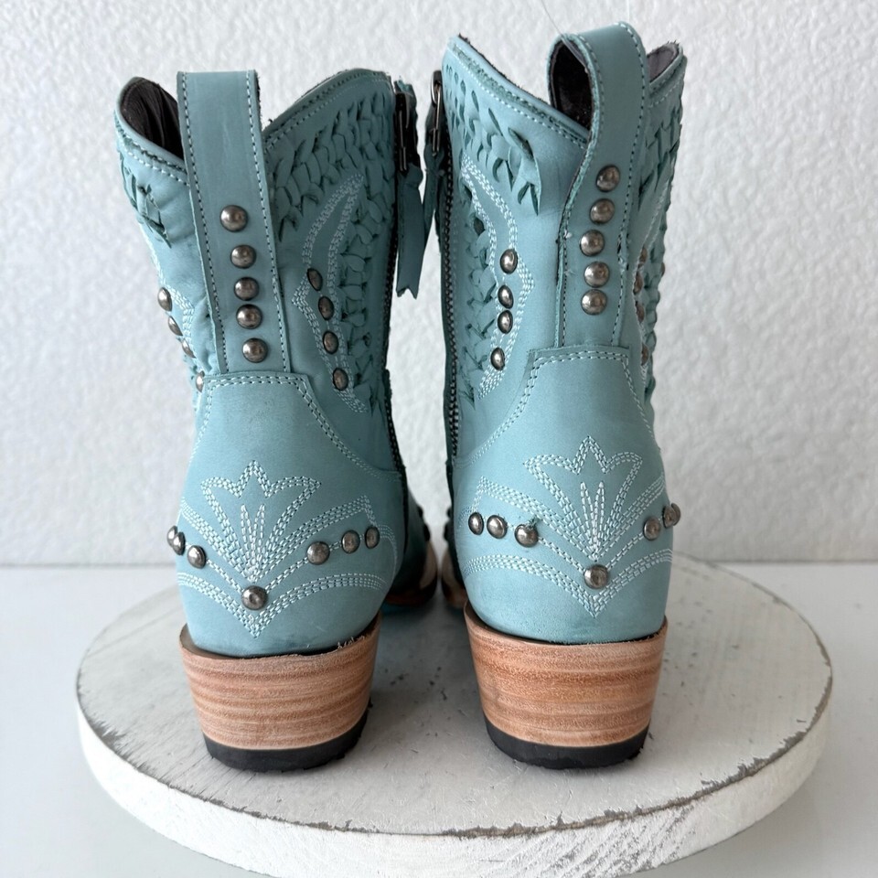 Lane COSSETTE Womens Cowboy Bootie 7.5 Blue Cowgirl Western Ankle Boots Snip Toe