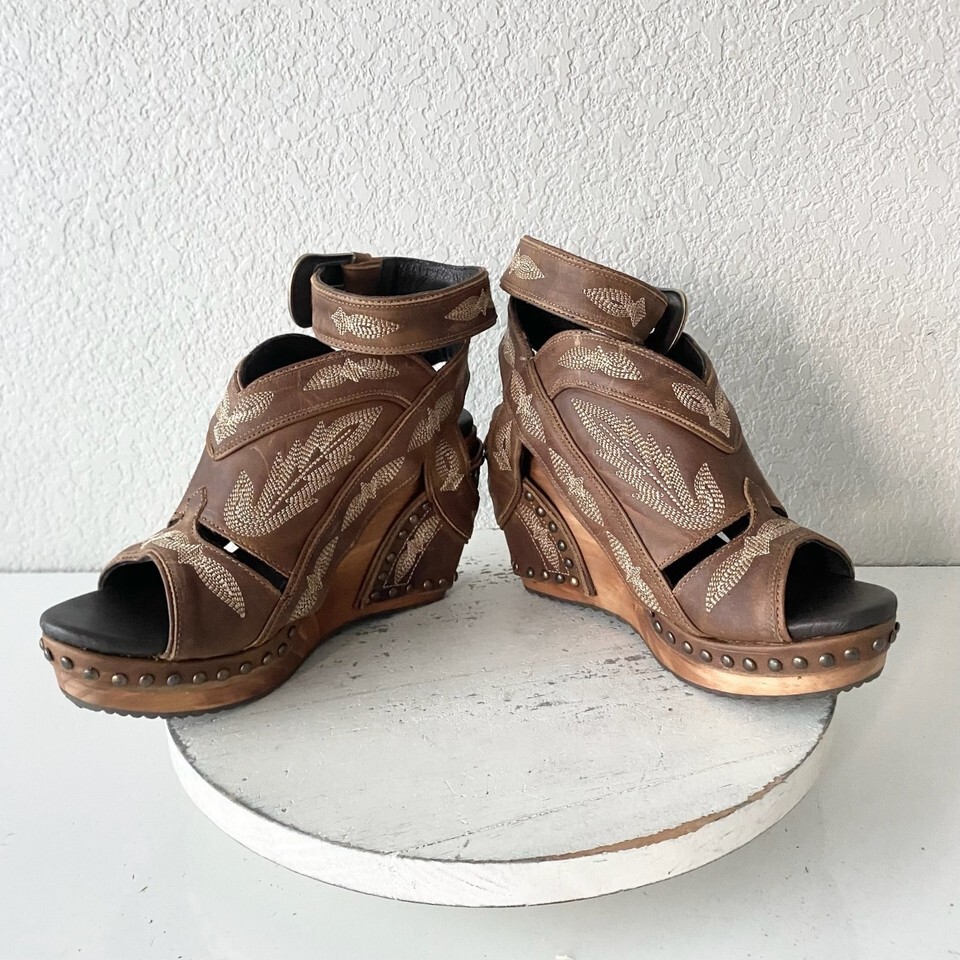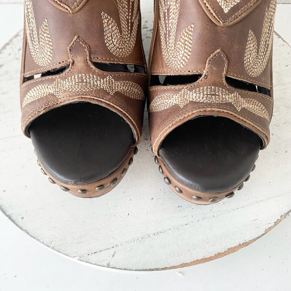 Lane Boots LEXINGTON Womens Brown Wedges 7.5 Western Sandals Cowgirl Wooden Heel