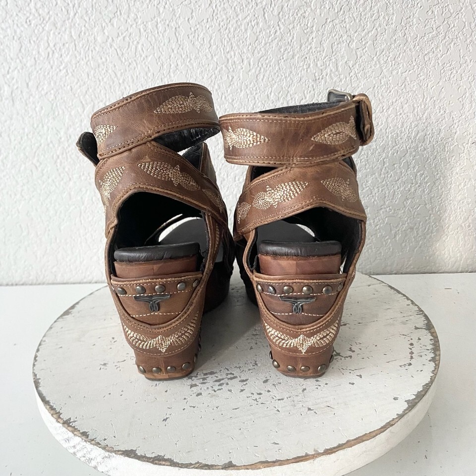 Lane Boots LEXINGTON Womens Brown Wedges 7.5 Western Sandals Cowgirl Wooden Heel added to cart.