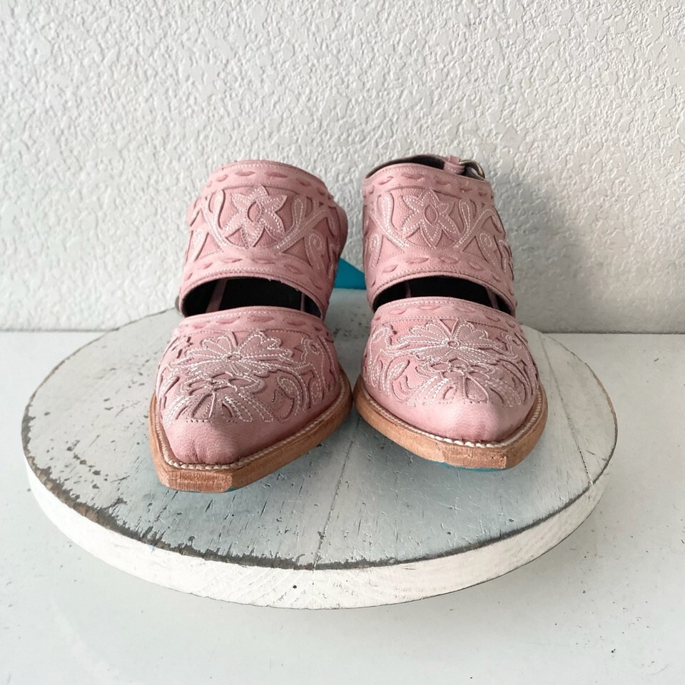 Lane Robin Slingback Mule Womens Booties in Pink Blush Leather - Slip on Ankle Boots with a Western Pointed Snip Toe