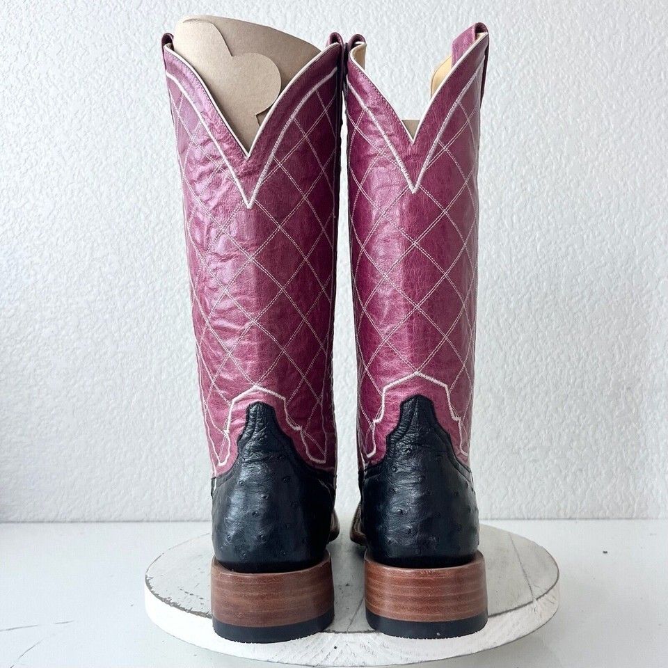 Rod Patrick Custom Bootmakers - Black Full Quill Ostrich Leather Mens Cowboy Boots with a Western Square Toe and with a Pink Shaft. Perfect for Tough Enough to Wear Pink!