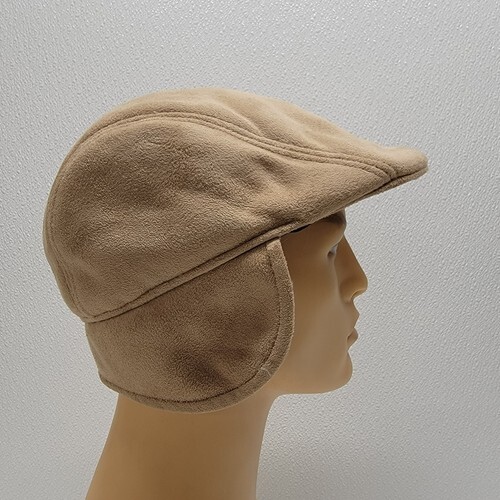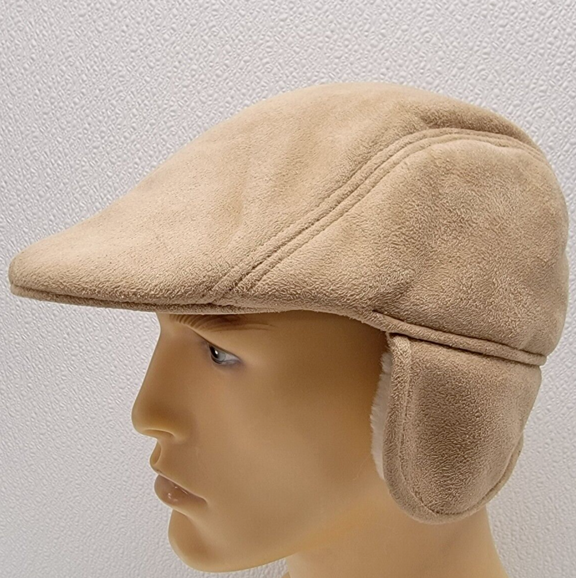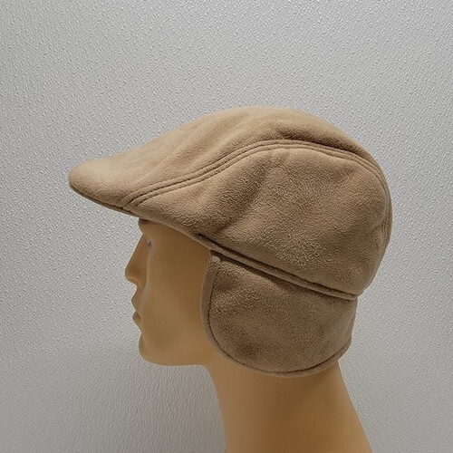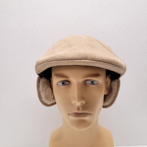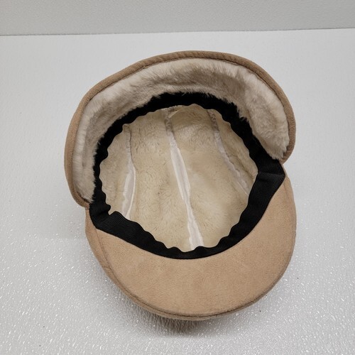 D Y, NY Tan Beige Faux Suede Winter Newsboy Cap Ear Flaps Soft. Images show actual hat that will ship.